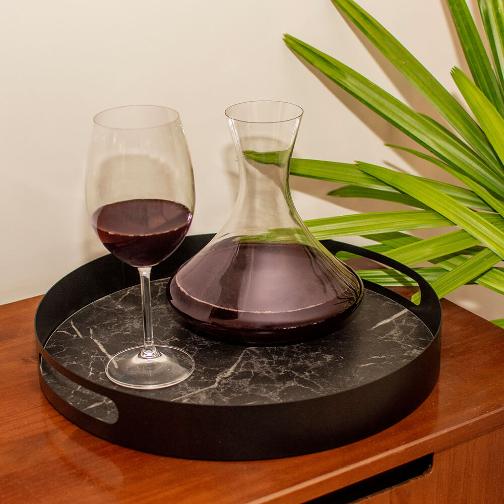 Sofisticada e funcional, para organizar, servir e decorar. Produto de aço e MDF fabricado no Brasil. A Coleção Bistrô é inspirada nos aconchegantes e pequenos restaurantes franceses que servem uma refeição caseira, trabalham com comida, bebidas alcoólicas, chás e cafés, como um bar e restaurante. O decanter e os copos não acompanham o produto.