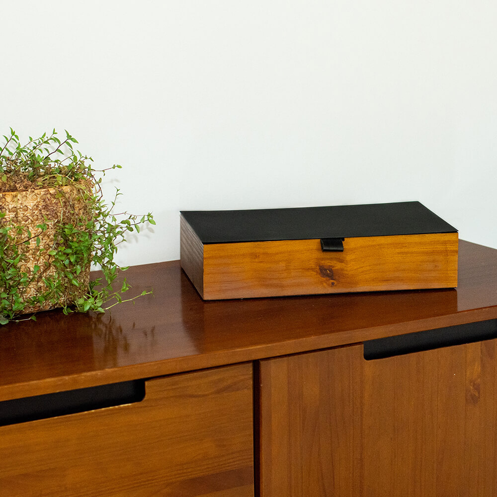 Para decorar e organizar com estilo rústico, sofisticado. Nessa caixa você pode organizar as cápsulas de café Dolce Gusto, Três Corações ou Nespresso, sachês de chá ou especiarias para o drinks com Gin Tônica. Produto de aço, couro e madeira certificada de reflorestamento fabricado no Brasil. A Coleção Bistrô é inspirada nos aconchegantes e pequenos restaurantes franceses que servem uma refeição caseira, trabalham com comida, bebidas alcoólicas, chás e cafés, como um bar e restaurante. Sugestão de presente para quem ama café, chá ou Gin Tônica. As cápsulas e sachês de chá não acompanham o produto.
