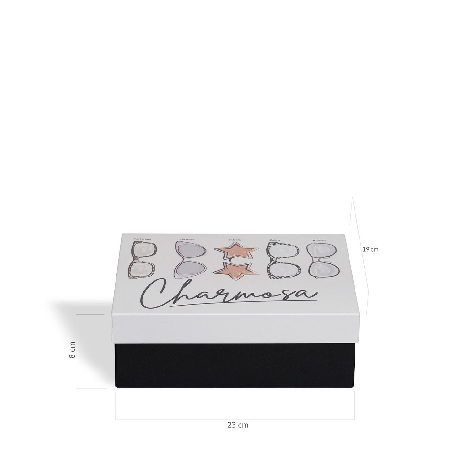 Moderna e com muito estilo, essa caixa foi desenvolvida com uma divisória interna para organizar de maneira fácil e prática óculos, a tampa abre com dobradiças. Produto de aço fabricado no Brasil. A Coleção Beauty é inspirada nas mulheres apaixonadas por maquiagens e acessórios, que curtem moda e beleza, arrasam no look e são uma inspiração para outras mulheres. Sugestão de presente para quem curte óculos. Os óculos não acompanham o produto.
