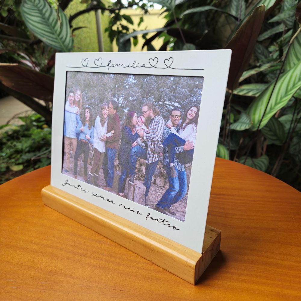 Capacidade: 1 foto 10x15cm. Posição horizontal ou vertical.