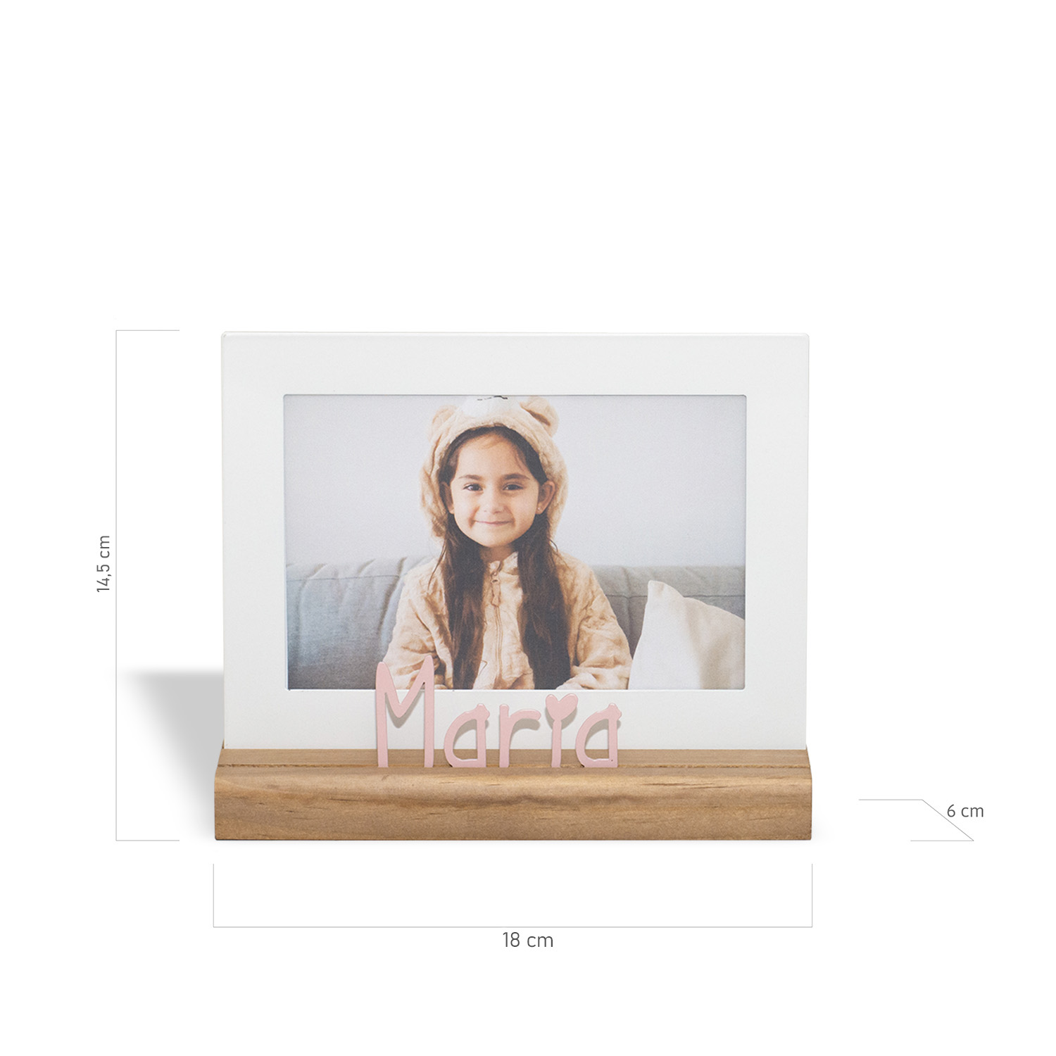 Maria. Para eternizar momentos, presentear e decorar. Para foto 10x15cm na posição horizontal ou vertical. Produto de aço, acrílico e madeira certificada de reflorestamento fabricado no Brasil. A coleção Amor é inspirada nesse sentimento afetivo que faz com que uma pessoa queira o bem de outra. Faça a diferença compartilhando o amor: cuide, respeite, encante, supreenda, presenteie e ame.