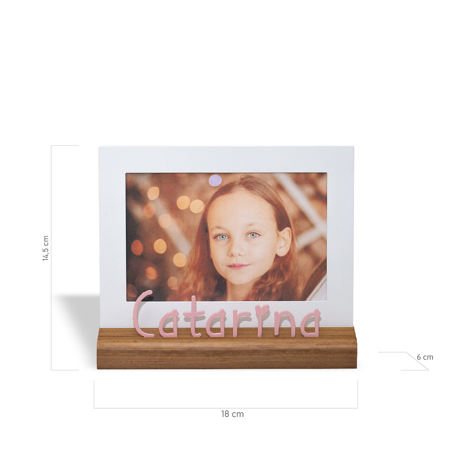 Catarina. Para eternizar momentos, presentear e decorar. Para foto 10x15cm na posição horizontal ou vertical. Produto de aço, acrílico e madeira certificada de reflorestamento fabricado no Brasil. A coleção Amor é inspirada nesse sentimento afetivo que faz com que uma pessoa queira o bem de outra. Faça a diferença compartilhando o amor: cuide, respeite, encante, supreenda, presenteie e ame.