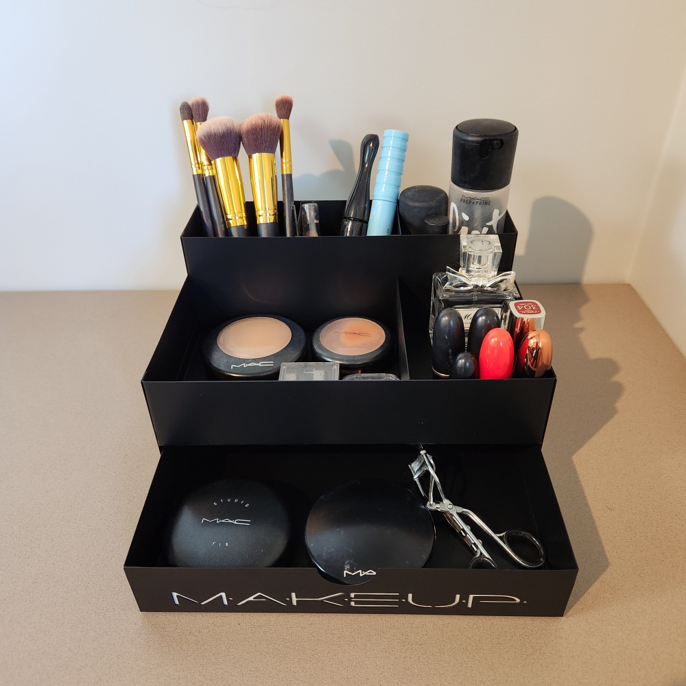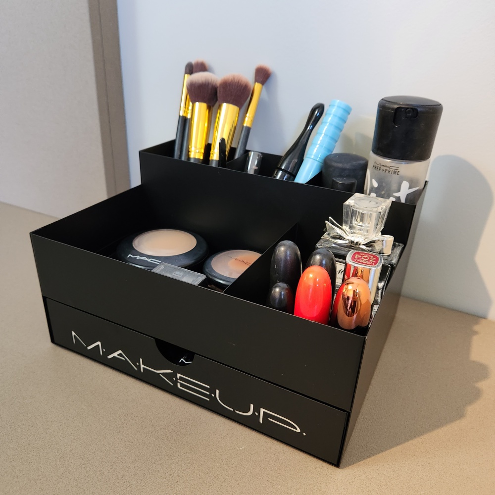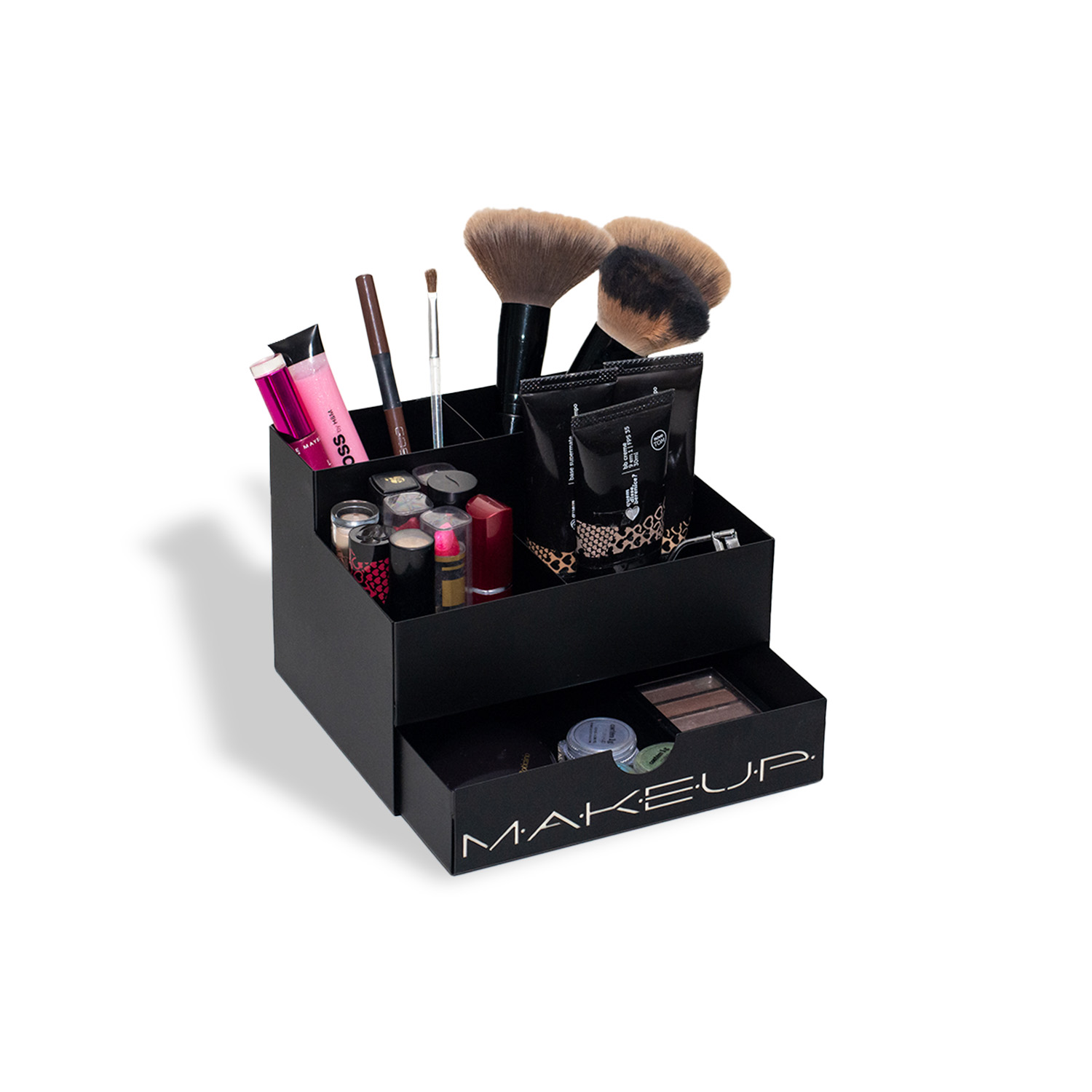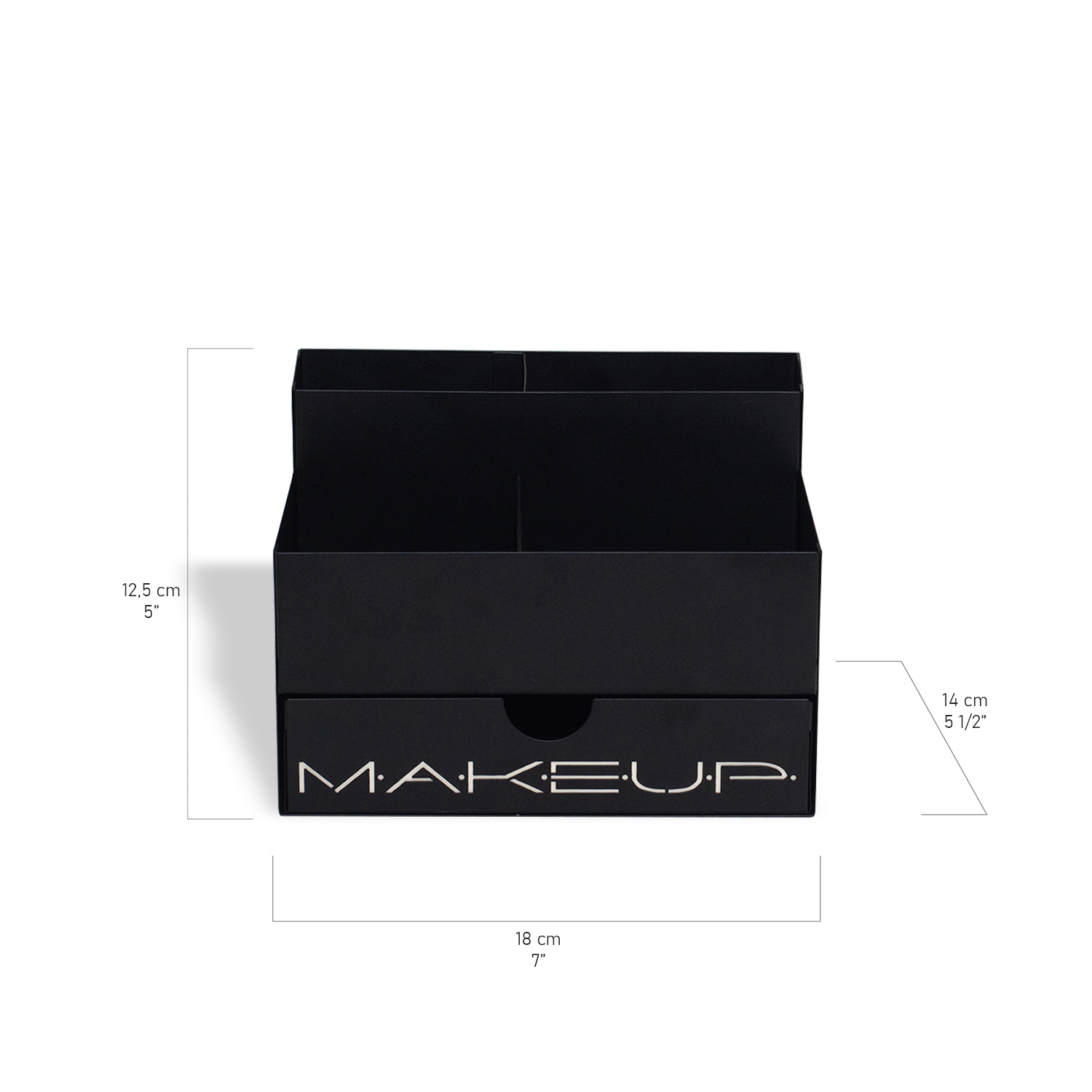 Moderno e com muito estilo, esse organizador de aço com gaveta foi desenvolvido com divisórias internas para organizar de maneira fácil e prática suas maquiagens: rímel, lápis, pó, base, sombras, pincéis, batons... Produto fabricado no Brasil. A Coleção Beauty é inspirada nas mulheres apaixonadas por maquiagens e acessórios, que curtem moda e beleza, arrasam no look e são uma inspiração para outras mulheres. Dê de presente para uma diva. Os pincéis e maquiagens não acompanham o produto.