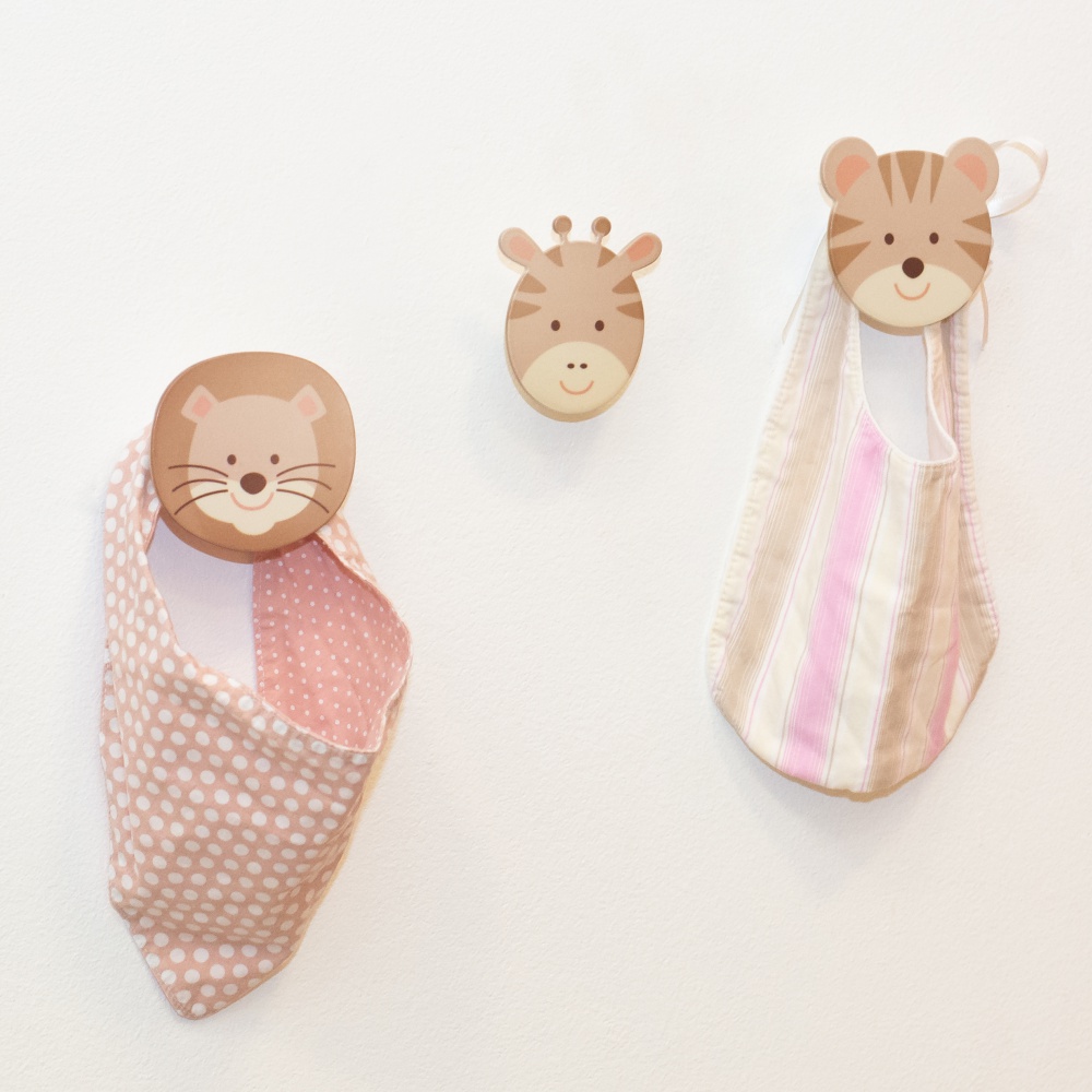 Gancho em formato de girafa, prático e funcional, para organizar e decorar fazendo composições com os outros animais da coleção - tigre e leão. Para fixar em paredes de alvenaria, o parafuso está embutido no gancho, acompanha 1 bucha. Produto de aço e madeira certificada de reflorestamento fabricado no Brasil. Os acessórios pendurados nos ganchos não acompanham o produto.