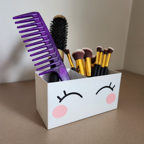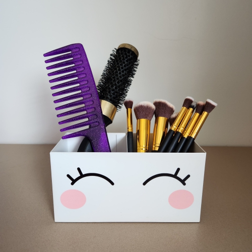 Para organizar de maneira fácil e prática suas maquiagens: rímel, lápis, pincéis... Produto de aço com dois compartimentos, fabricado no Brasil. A Coleção Beauty é inspirada em meninas sonhadoras apaixonadas por maquiagens e acessórios, que curtem moda e beleza, arrasam no look e são uma inspiração para outras meninas. Também pode ser utilizado como porta lápis, porta caneta, porta controle, porta escova de cabelo. Dê de presente para uma princesa. Os pincéis e maquiagens não acompanham o produto.