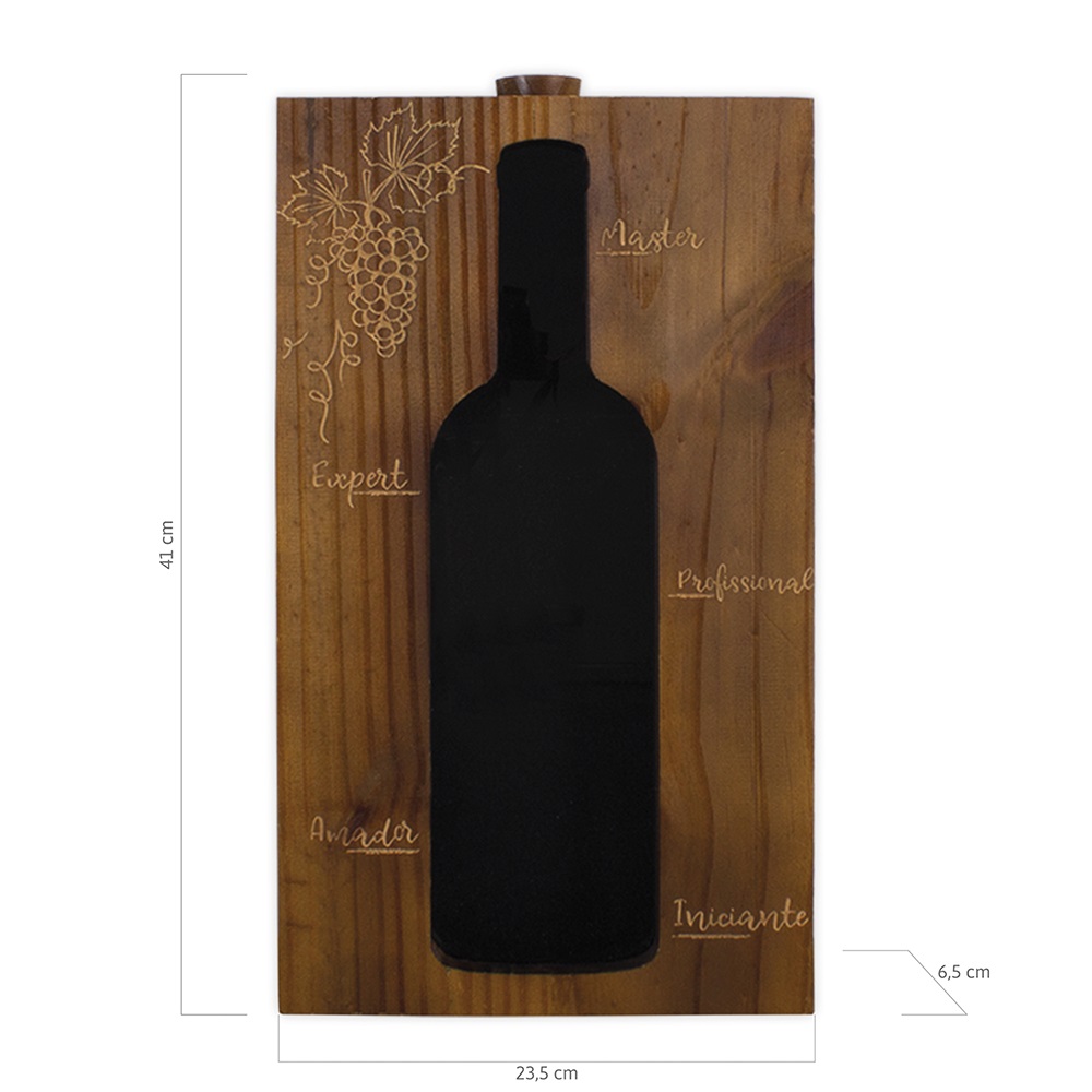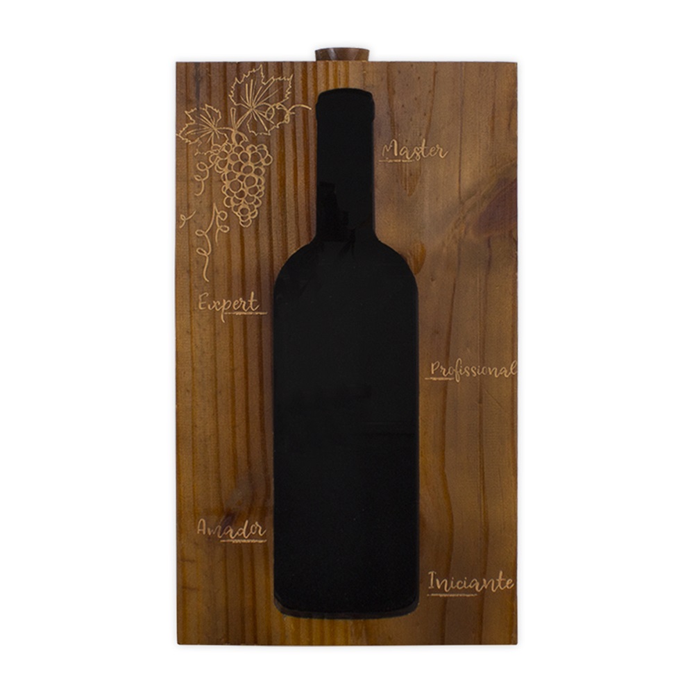 Iniciante, amador, profissional, expert ou master? Para colocar as rolhas dos vinhos que bebemos dentro do quadro porta rolhas, decorar com toque rústico da madeira com suas variações de tonalidades e veios, e recordar bons momentos. Produto de aço, vidro e madeira certificada de reflorestamento fabricado no Brasil. Para fixar em parede de alvenaria com os parafusos e buchas que acompanham o produto. A Coleção Happy Hour é uma celebração à vida. A vida não é só para ser vivida. É para ser celebrada. Reuna a família e os amigos. As rolhas não acompanham o produto.