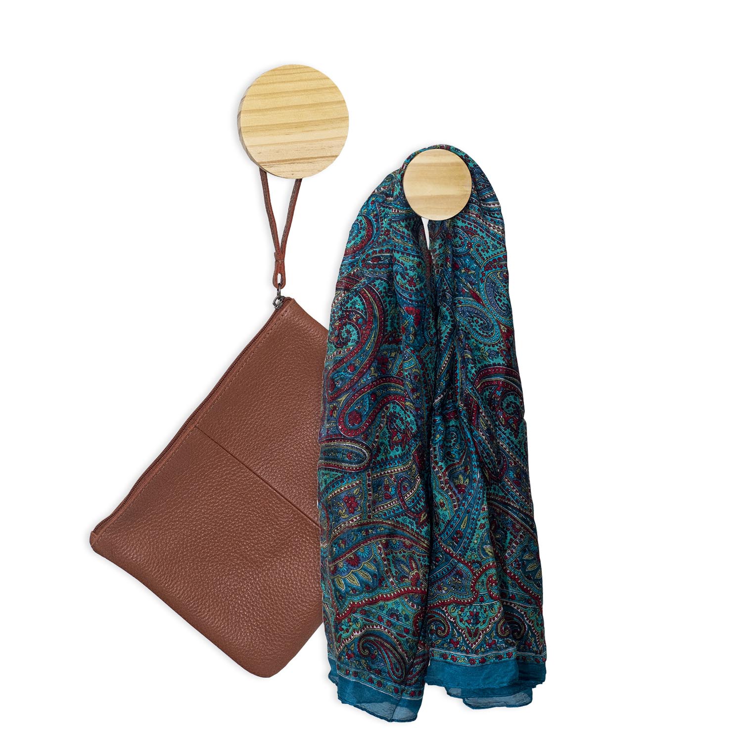 Conjunto formado por 2 ganchos, rústicos, práticos e funcionais, para organizar e decorar fazendo composições. Para fixar em parede de alvenaria com os parafusos e buchas que acompanham o produto. Produto de aço e madeira certificada de reflorestamento fabricado no Brasil. A Coleção Básica é atemporal, minimalista e neutra. Minimalismo é simplificar a vida eliminando os excessos e mantendo apenas o que é essencial, sem abrir mão da funcionalidade e da praticidade. A bolsa e o lenço não acompanham o produto.