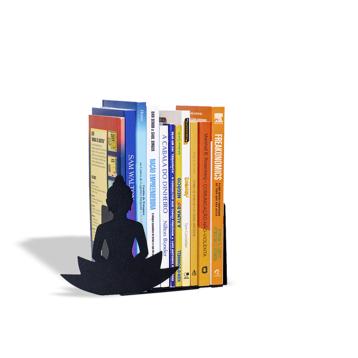 Buda - quem alcança a iluminação. Flor de lótus - elegância, pureza, graciosidade e perfeição. Organize seus livros preferidos com o charme do aço recortado. Produto fabricado no Brasil. Os livros não acompanham o produto.