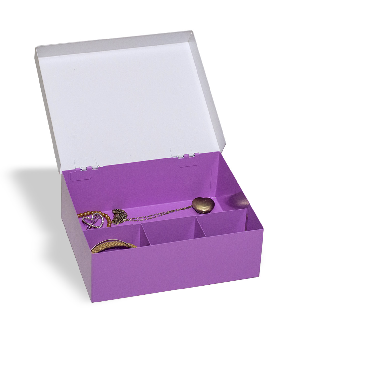 Moderna e com muito estilo, essa caixa foi desenvolvida com divisórias internas para organizar de maneira fácil e prática maquiagens: rímel, lápis, pó, base, sombras, pincéis, batons, a tampa abre com dobradiças. Produto de aço fabricado no Brasil. A Coleção Beauty é inspirada nas mulheres apaixonadas por maquiagens e acessórios, que curtem moda e beleza, arrasam no look e são uma inspiração para outras mulheres. Sugestão de presente para quem ama maquiagem. As maquiagens não acompanham o produto.