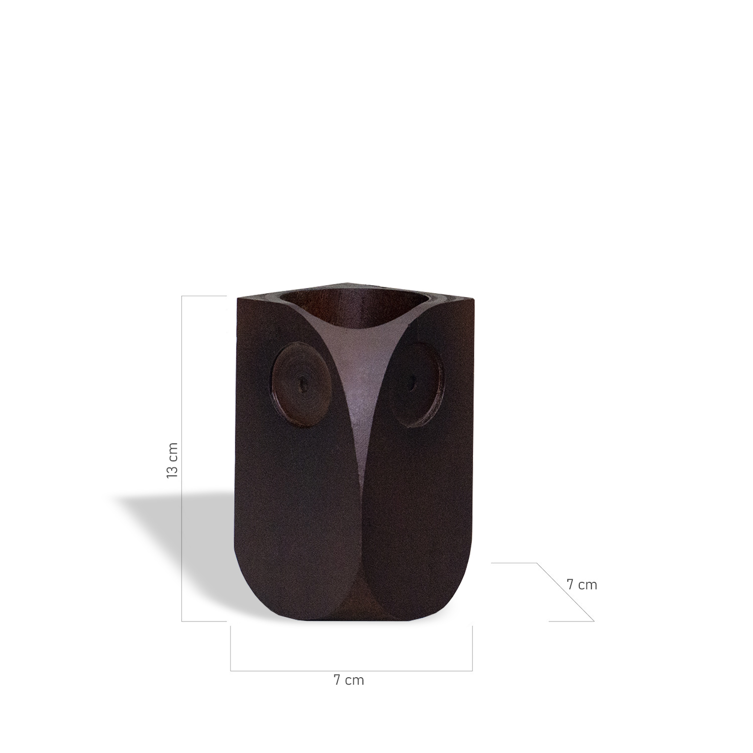 Para organizar e decorar a mesa de trabalho. A coruja simboliza sabedoria e conhecimento. De madeira maciça com suas variações de tonalidades e veios que levam para a sua casa uma identidade única que esbanja charme e autenticidade. A madeira utilizada é certificada de reflorestamento. Produto fabricado no Brasil. A coleção Floresta Urbana decora e traz um pouco da natureza para o seu dia-a-dia. Os lápis, canetas, tesoura não acompanham o produto.