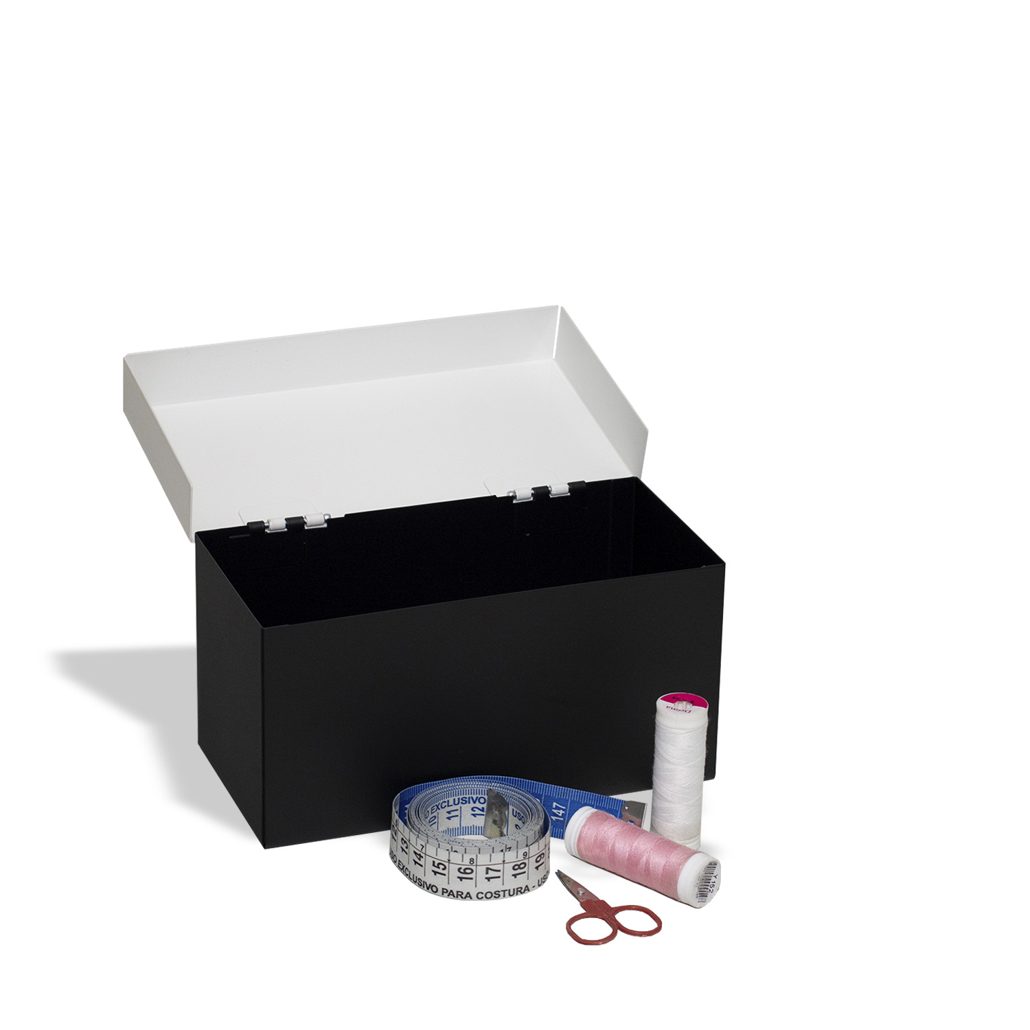 Para organizar acessórios de costura e decorar. Tenha agulhas, linhas e tesoura, sempre à mão, para aqueles imprevistos. Caixa de aço, a tampa abre com dobradiças. Produto fabricado no Brasil. A Coleção Beauty é inspirada nas mulheres apaixonadas por maquiagens e acessórios, que curtem moda e beleza, arrasam no look e são uma inspiração para outras mulheres. Sugestão de presente para quem ama costurar. Os carretéis, linhas, régua não acompanham o produto.