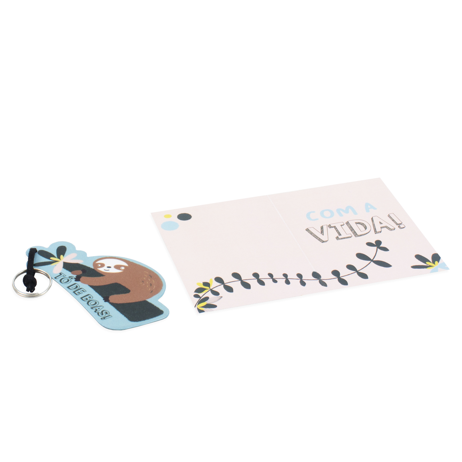 Você pode presentear alguém com um chaveiro e ainda escrever uma mensagem no cartão. Imagens meramente ilustrativas.
