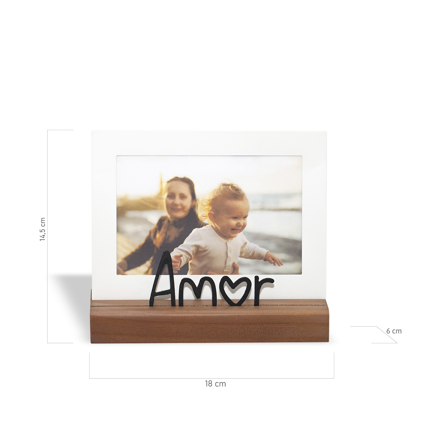 Amor. Para eternizar momentos, presentear e decorar. Para foto 10x15cm na posição horizontal ou vertical. Produto de aço, acrílico e madeira certificada de reflorestamento fabricado no Brasil. A coleção Amor é inspirada nesse sentimento afetivo que faz com que uma pessoa queira o bem de outra. Faça a diferença compartilhando o amor: cuide, respeite, encante, supreenda, presenteie e ame.