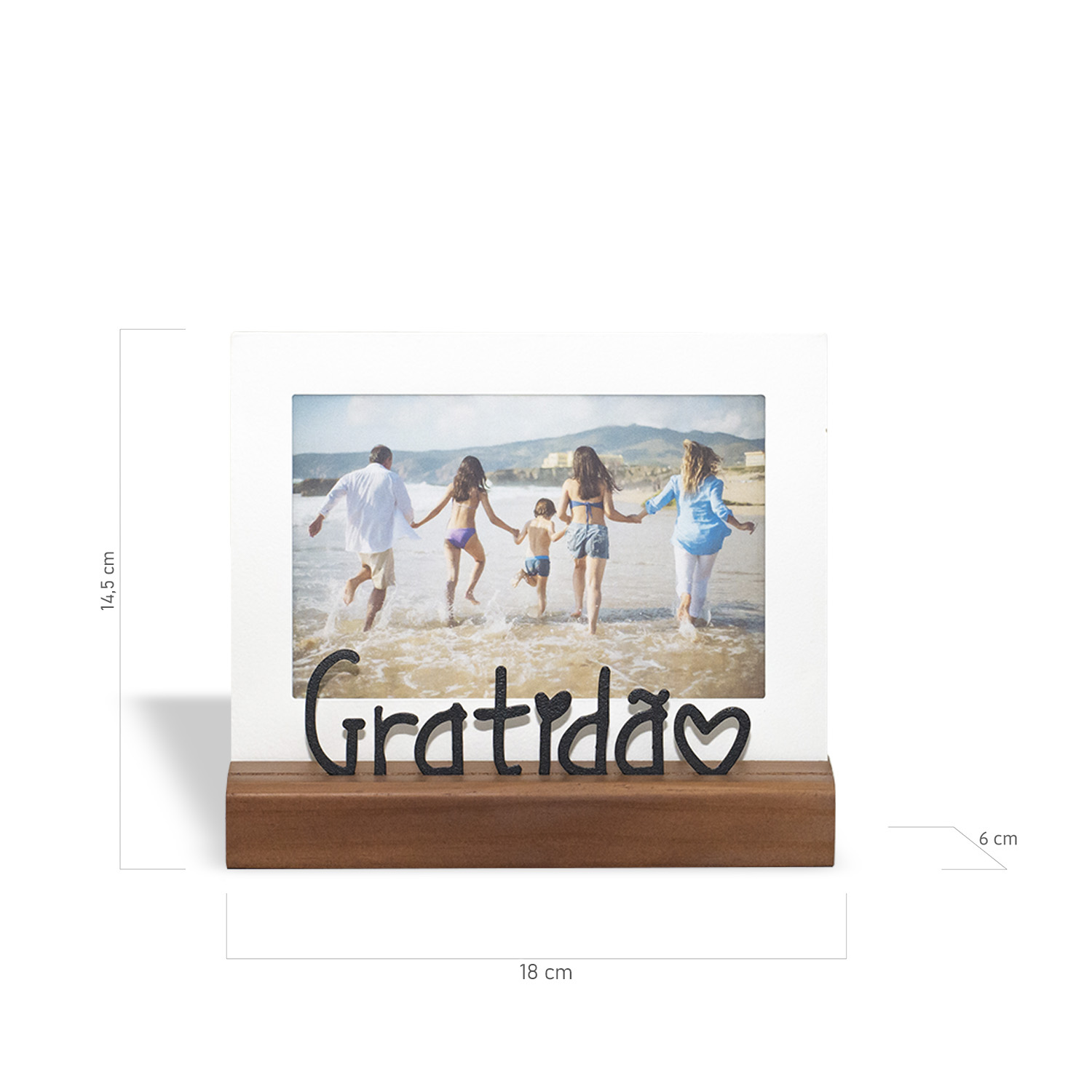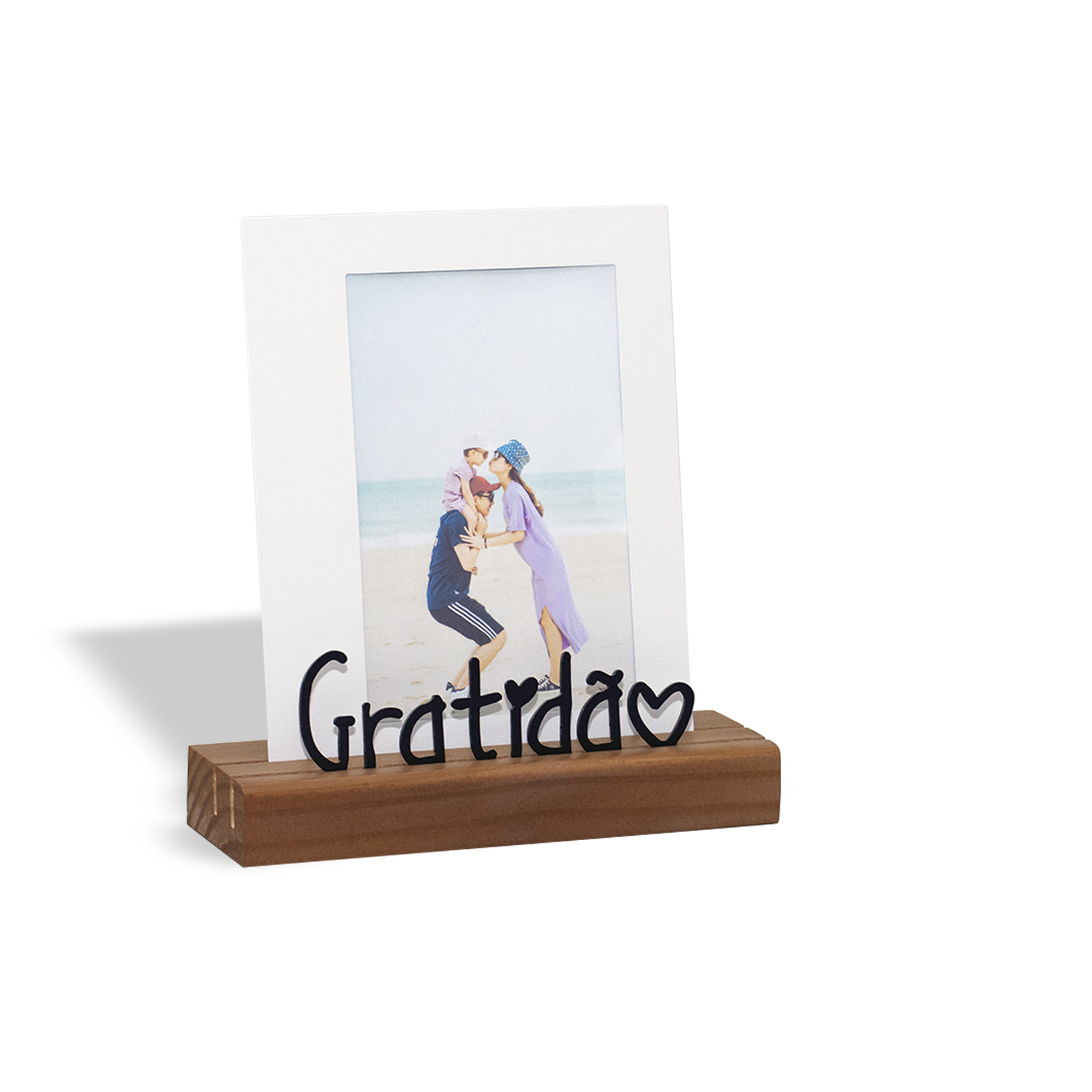 Gratidão. Para eternizar momentos, presentear e decorar. Para foto 10x15cm na posição horizontal ou vertical. Produto de aço, acrílico e madeira certificada de reflorestamento fabricado no Brasil. A coleção Amor é inspirada nesse sentimento afetivo que faz com que uma pessoa queira o bem de outra. Faça a diferença compartilhando o amor: cuide, respeite, encante, supreenda, presenteie e ame.