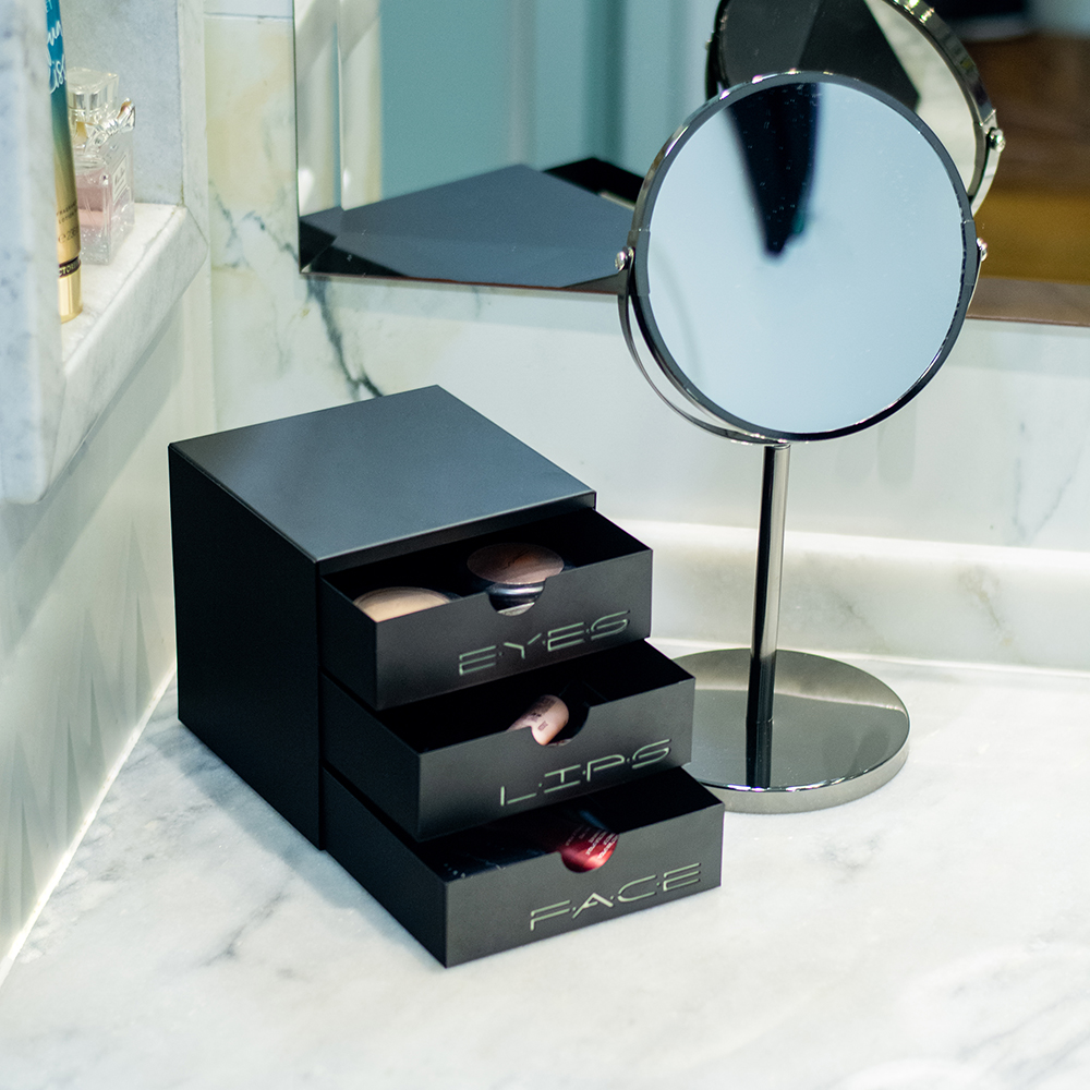 Moderno e com muito estilo, esse organizador foi desenvolvido para guardar pincéis e maquiagens nas gavetas de forma organizada, fácil e prática. Produto de aço fabricado no Brasil. A Coleção Beauty é inspirada nas mulheres apaixonadas por maquiagens e acessórios, que curtem moda e beleza, arrasam no look e são uma inspiração para outras mulheres. Dê de presente para uma diva. Os pincéis e maquiagens não acompanham o produto.