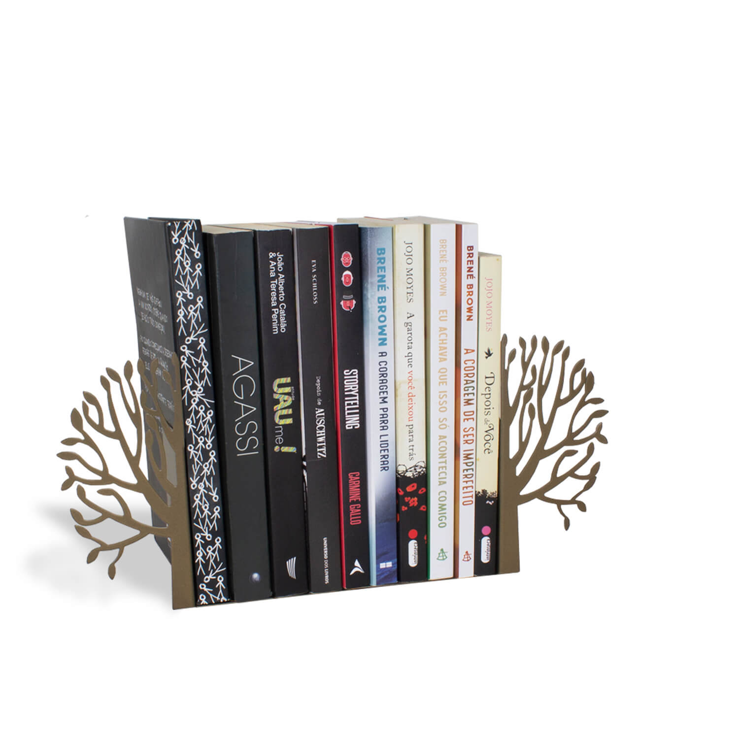 Para segurar livros e decorar. A imagem da arvore ilustra vida, crescimento, renovacao. Produto de aco recortado fabricado no Brasil. A colecao Floresta Urbana decora e traz um pouco da natureza para o seu dia-a-dia. Voce sabia que as plantas sao capazes de transformar a energia de uma casa, melhorar a qualidade do ar, reduzir o estresse e ajudar a diminuir o ritmo. Seja um incentivador, uma inspiracao para as outras pessoas. Os livros nao acompanham o produto.