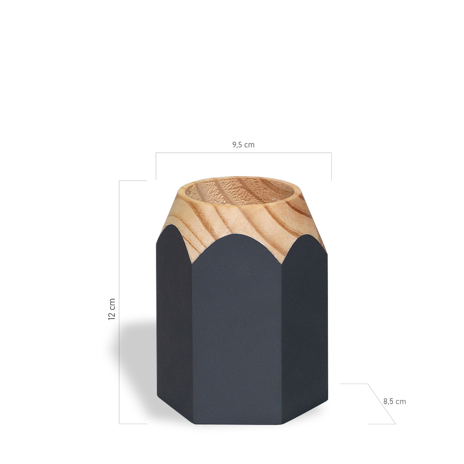 Para organizar e decorar a mesa de trabalho. De madeira maciça com suas variações de tonalidades e veios possuem uma identidade única que esbanja charme e autenticidade. A madeira utilizada é certificada de reflorestamento. Produto fabricado no Brasil. Todo dia é dia de se divertir! Em qualquer hora e em qualquer lugar! Então, por que não decorar os nossos ambientes com produtos que além de funcionais e práticos sejam divertidos? Sugestão de presente para professor(a). Os lápis, canetas, tesoura não acompanham o produto.