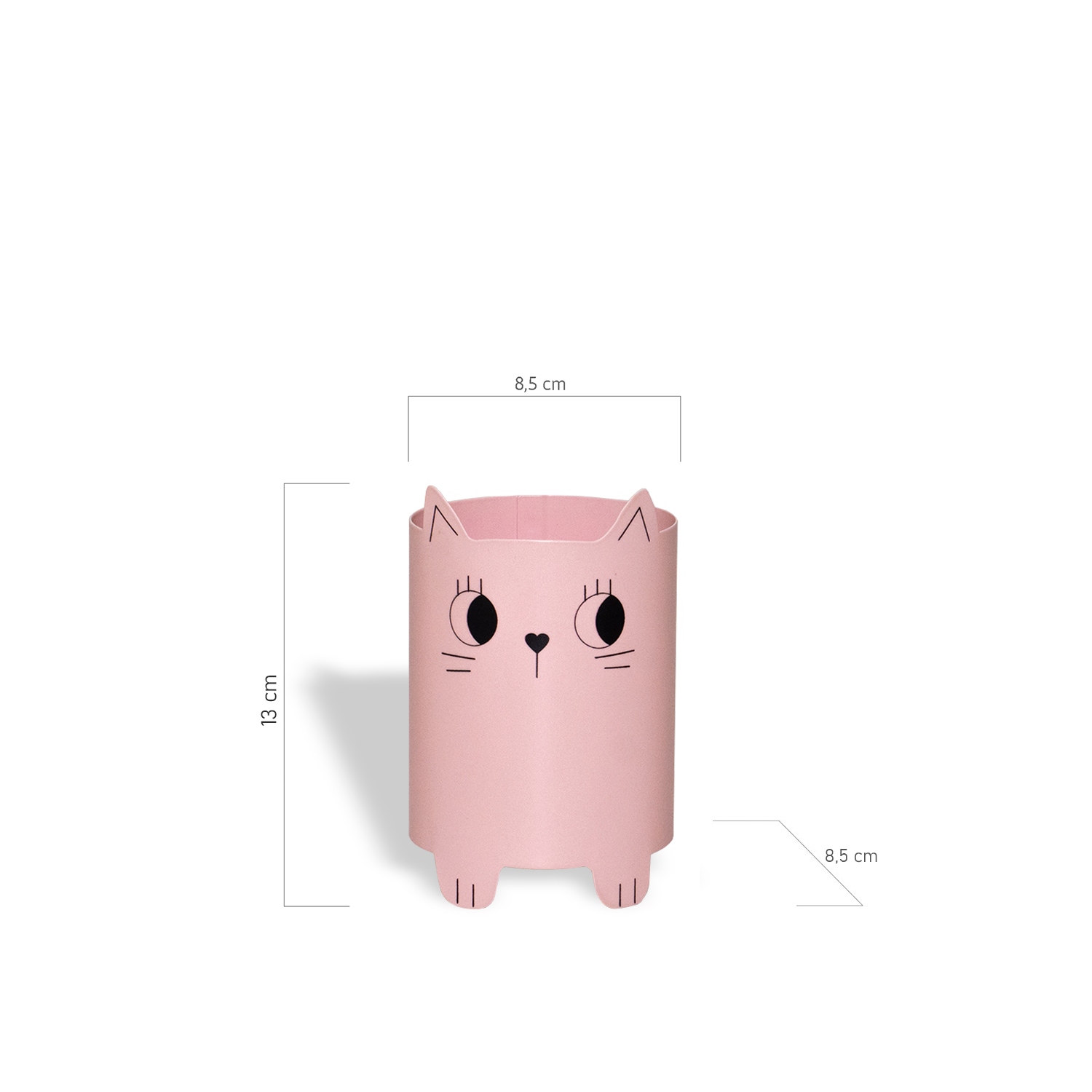 Para gatinhas, organizarem e decorarem a mesa de trabalho. Também pode ser utilizado para colocar pincéis de maquiagem, escova de cabelo, etc... Produto de aço fabricado no Brasil. Todo dia é dia de se divertir! Em qualquer hora e em qualquer lugar! Então, por que não decorar os nossos ambientes com produtos que além de funcionais e práticos sejam divertidos? Sugestão de presente para meninas. Os lápis não acompanham o produto.