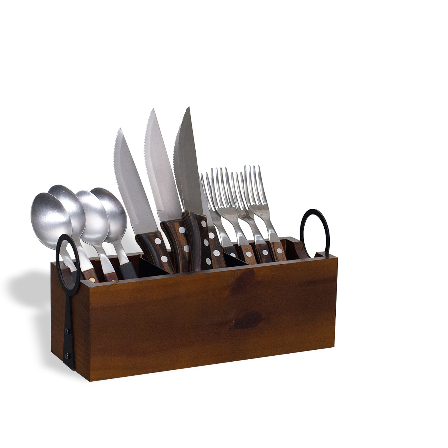 Porta talheres pendulo é confeccionado em madeira com suas variações de tonalidades e veios que levam para a sua casa uma identidade única que esbanja charme e autenticidade. As suas alças laterais e divisórias internas removíveis apresentam toda a beleza do aço recortado. Produto em madeira certificada de reflorestamento com detalhes em aço fabricado no Brasil. A Coleção Bistrô é inspirada nos aconchegantes e pequenos restaurantes franceses que servem uma refeição caseira, trabalham com comida, bebidas alcoólicas, chás e cafés, como um bar e restaurante. Reuna os amigos e a família. Os talheres, azeite, saleiro, pimenteiro e vinagre não acompanham o produto.