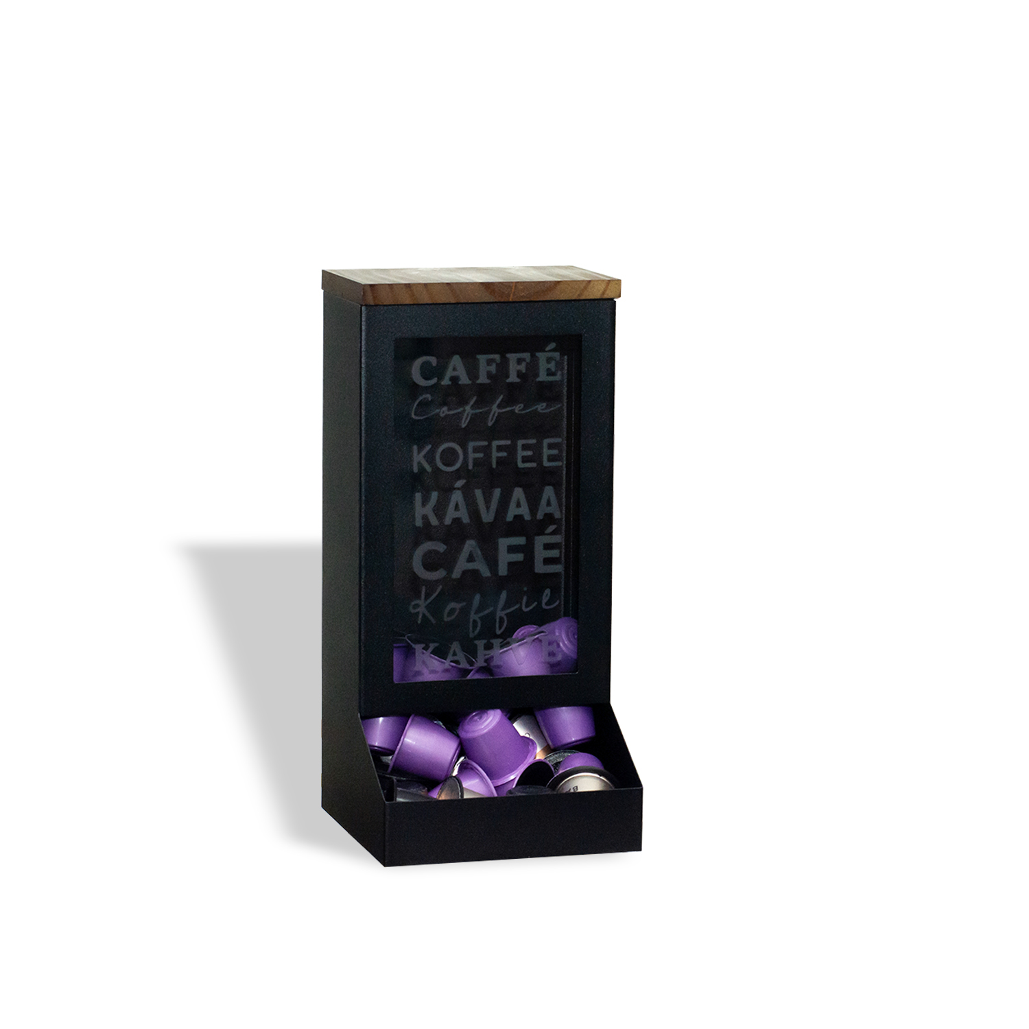 Para organizar seu cantinho do café. Para cápsulas de café Dolce Gusto, Três Corações e Nespresso. Produto de aço recortado e madeira maciça certificada de reflorestamento. Produto fabricado no Brasil. A Coleção Bistrô é inspirada nos aconchegantes e pequenos restaurantes franceses que servem uma refeição caseira, trabalham com comida, bebidas alcoólicas, chás e cafés, como um bar e restaurante. Sugestão de presente para quem ama café. As cápsulas não companham o produto.
