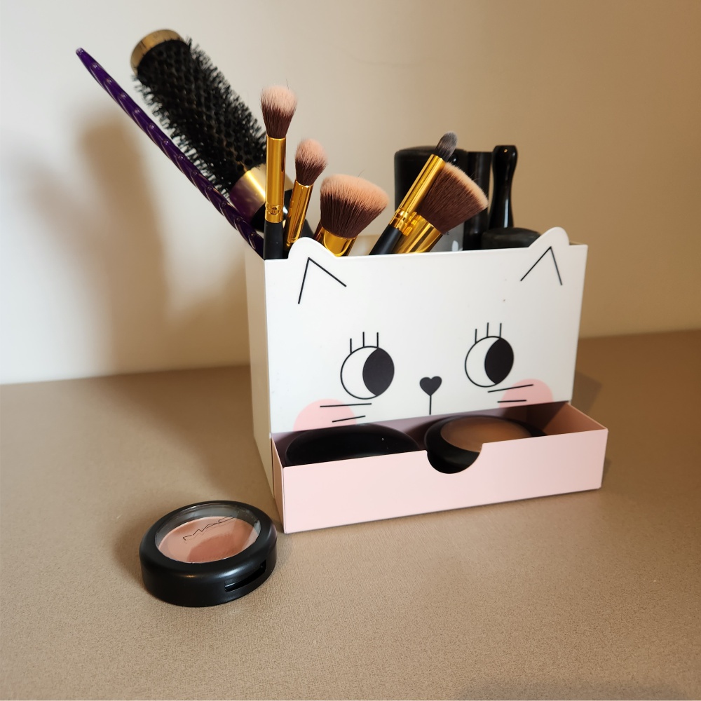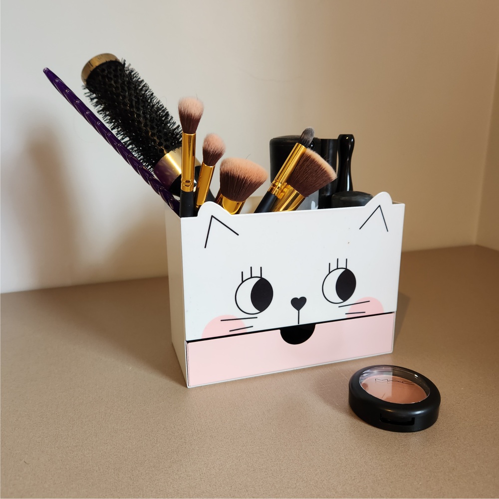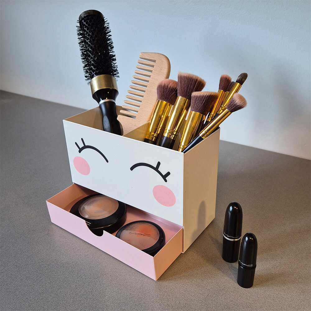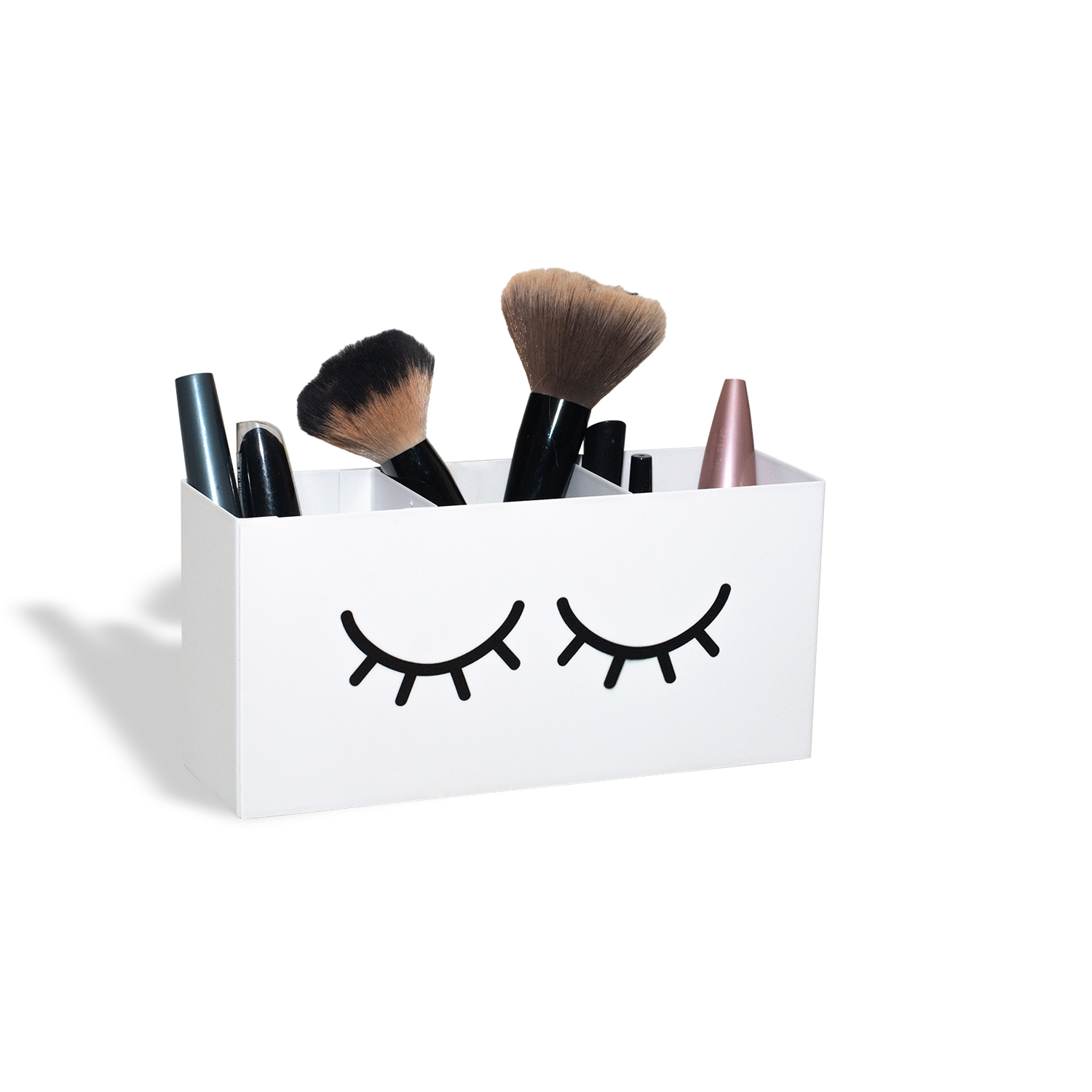 Para organizar de maneira fácil e prática suas maquiagens: rímel, lápis, pincéis, batons... Produto de aço fabricado no Brasil. A Coleção Beauty é inspirada em meninas sonhadoras apaixonadas por maquiagens e acessórios, que curtem moda e beleza, arrasam no look e são uma inspiração para outras meninas. Também pode ser utilizado como porta lápis, porta caneta, porta controle, porta escova de cabelo. Dê de presente para uma princesa. Os pincéis e maquiagens não acompanham o produto.
