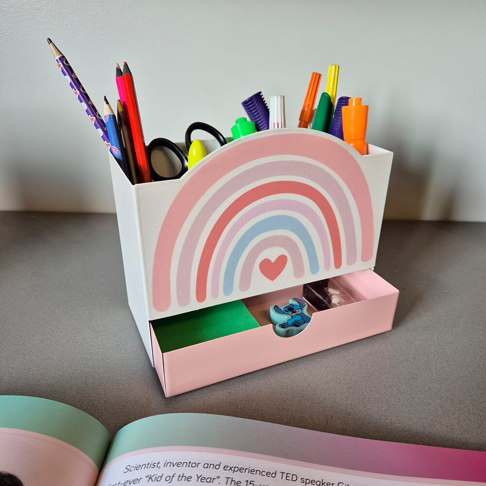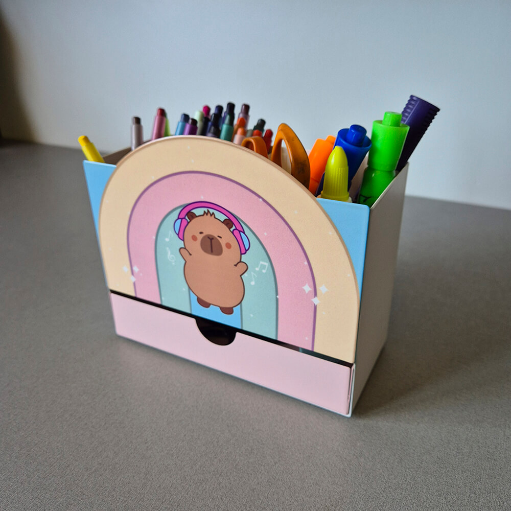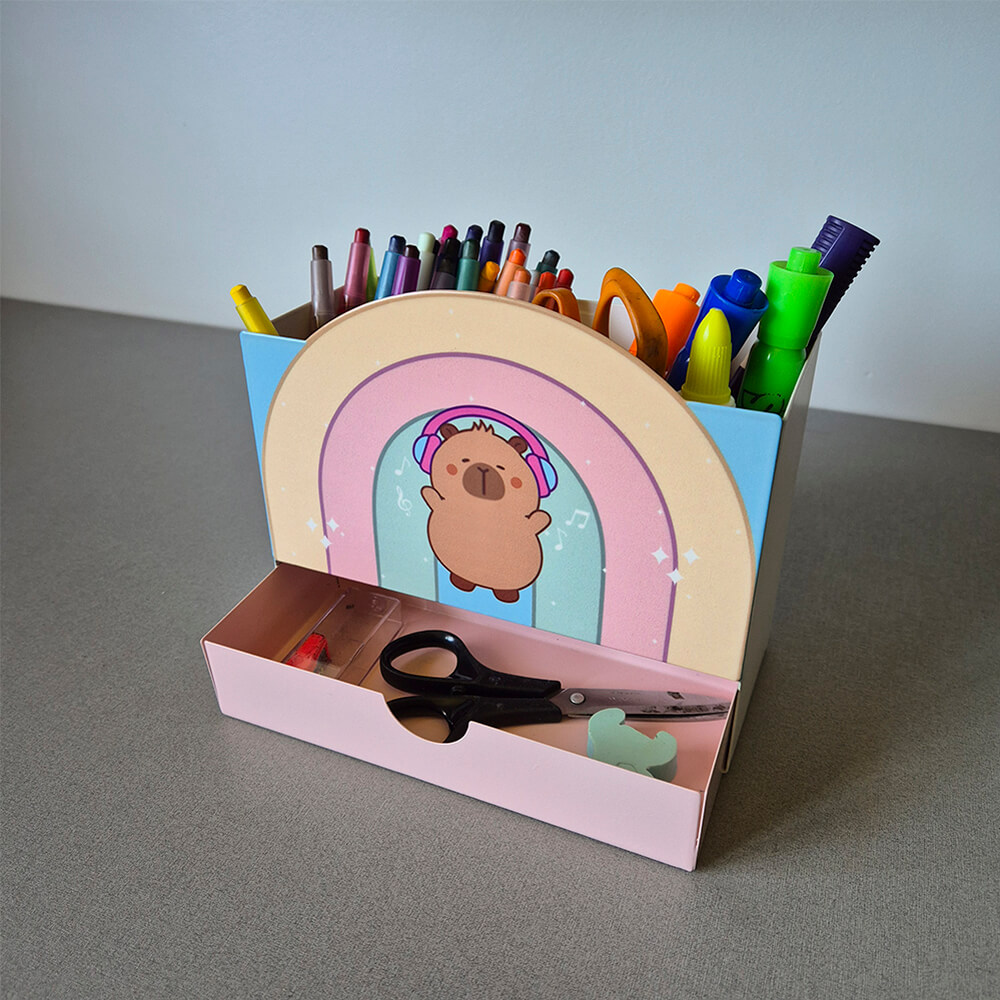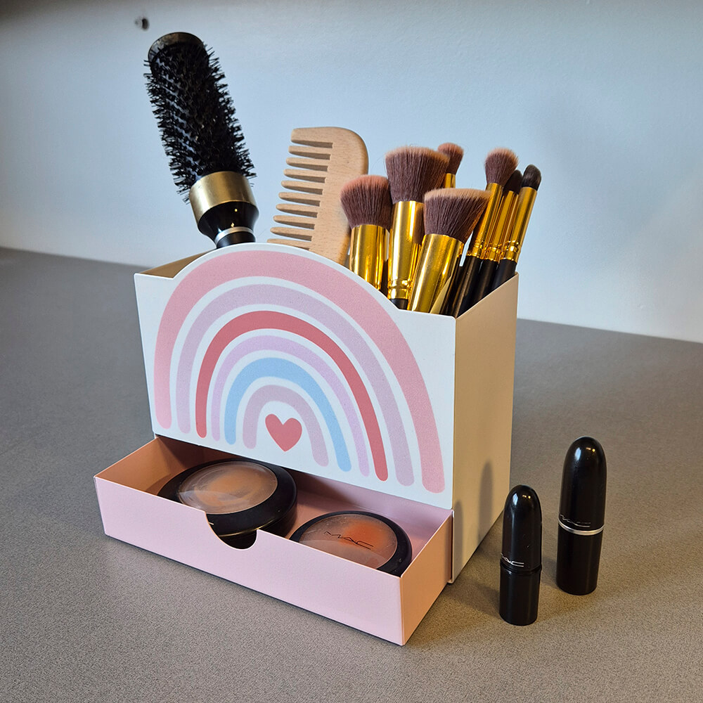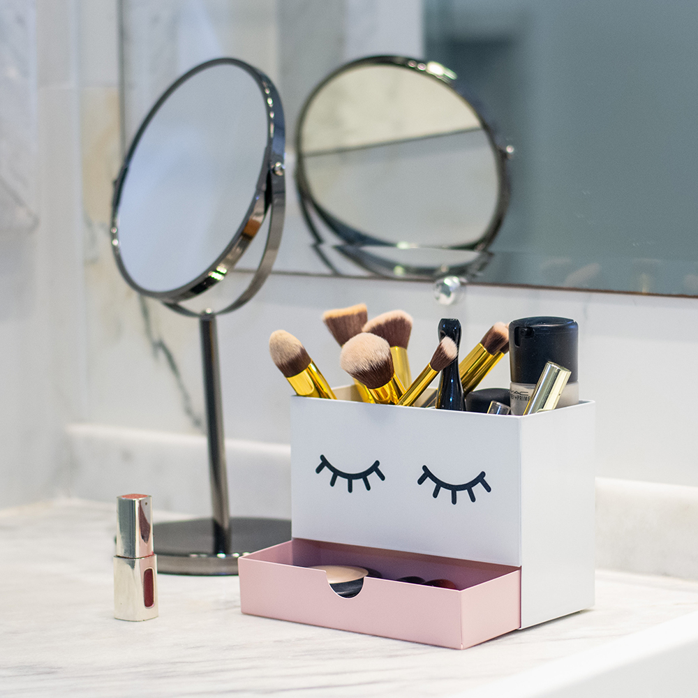 Para organizar de maneira fácil e prática suas maquiagens: rímel, lápis, pincéis, batons... Produto de aço fabricado no Brasil. A Coleção Beauty é inspirada em meninas sonhadoras apaixonadas por maquiagens e acessórios, que curtem moda e beleza, arrasam no look e são uma inspiração para outras meninas. Também pode ser utilizado como porta lápis, porta caneta, porta controle, porta escova de cabelo. Dê de presente para uma princesa. Os pincéis e maquiagens não acompanham o produto.