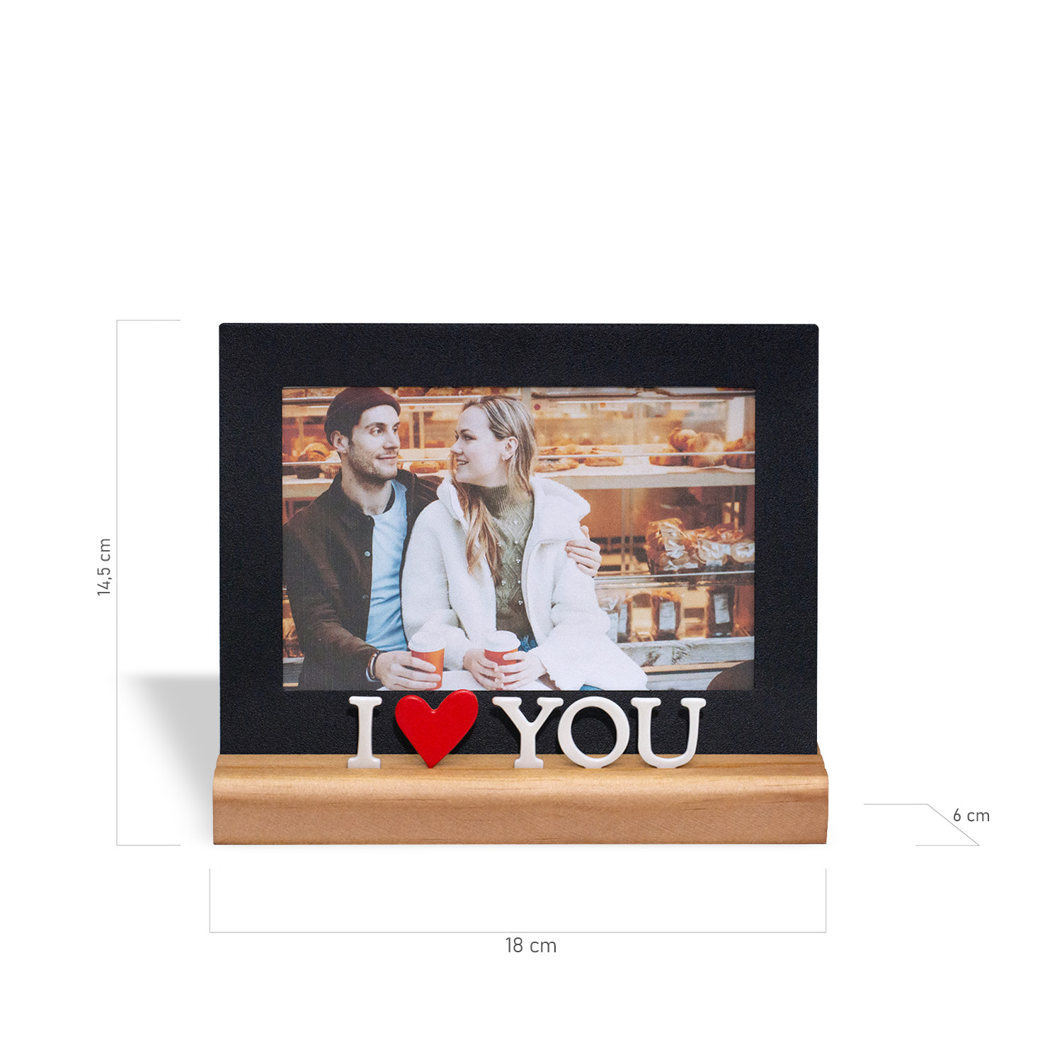 I love you. Para eternizar momentos, presentear e decorar. Para foto 10x15cm na posição horizontal ou vertical. Produto de aço e madeira certificada de reflorestamento fabricado no Brasil. A coleção Amor é inspirada nesse sentimento afetivo que faz com que uma pessoa queira o bem de outra. Faça a diferença compartilhando o amor: cuide, respeite, encante, supreenda, presenteie e ame.