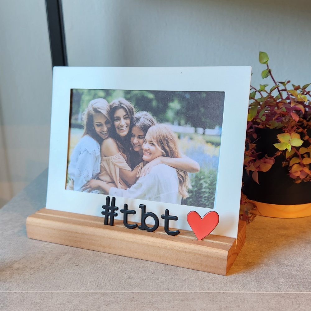 Você sabe qual é o significado de #tbt? #tbt é um acrônimo para "Throwback Thursday", que pode ser traduzido como a Quinta-feira das Lembranças. Para eternizar momentos, presentear e decorar. Para foto 10x15cm na posição horizontal ou vertical. Produto de aço, acrílico e madeira certificada de reflorestamento fabricado no Brasil. A coleção Amor é inspirada nesse sentimento afetivo que faz com que uma pessoa queira o bem de outra. Faça a diferença compartilhando o amor: cuide, respeite, encante, supreenda, presenteie e ame.