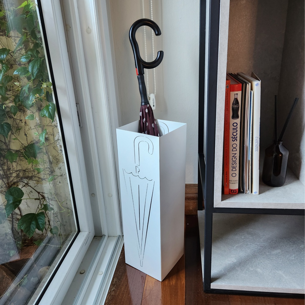 Para organizar e decorar a entrada de casa, do escritório, do consultório, da loja, já que precisamos ter um local para deixar os guarda-chuvas nos dias de chuva. Produto de aço fabricado no Brasil. A Coleção Básica é atemporal, minimalista e neutra. Minimalismo é simplificar a vida eliminando os excessos e mantendo apenas o que é essencial, sem abrir mão da funcionalidade e da praticidade. Qual a previsão do tempo para hoje? Os guarda-chuvas não acompanham o produto.