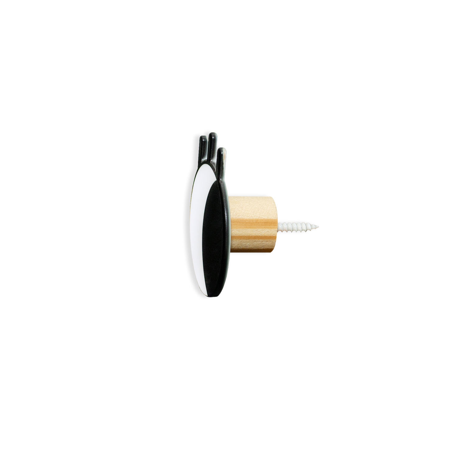 1 par de olhinhos da gatinha Mimi. Gancho de parede para organizar e decorar. Para fixar em paredes de alvenaria, o parafuso está embutido no gancho, acompanha 1 bucha. Produto de aço e madeira certificada de reflorestamento fabricado no Brasil. Os acessórios pendurados nos ganchos não acompanham o produto.