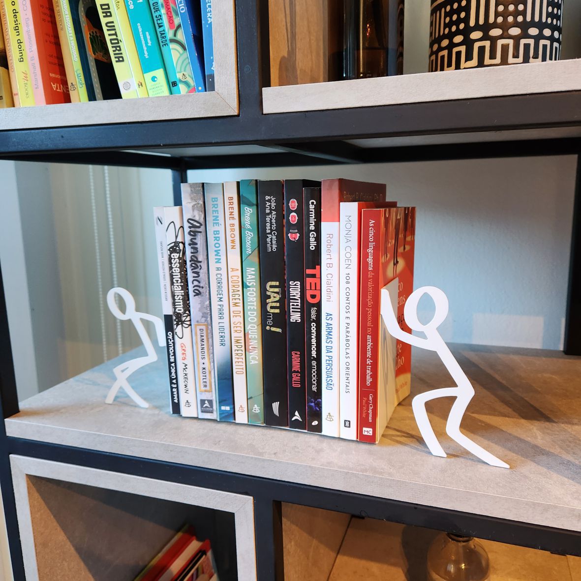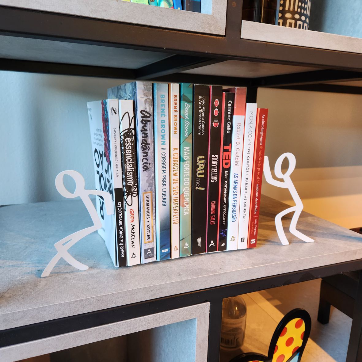 Para segurar e organizar livros decorando e divertindo. Produto de aço fabricado no Brasil. Todo dia é dia de se divertir! Em qualquer hora e em qualquer lugar! Então, por que não decorar os nossos ambientes com produtos que além de funcionais e práticos sejam divertidos? Os livros não acompanham o produto.
