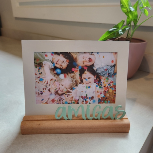Amigas. Para eternizar momentos, presentear e decorar. Para foto 10x15cm na posição horizontal ou vertical. Produto de aço, acrílico e madeira certificada de reflorestamento fabricado no Brasil. A coleção Amor é inspirada nesse sentimento afetivo que faz com que uma pessoa queira o bem de outra. Faça a diferença compartilhando o amor: cuide, respeite, encante, supreenda, presenteie e ame. Presente para amigas.