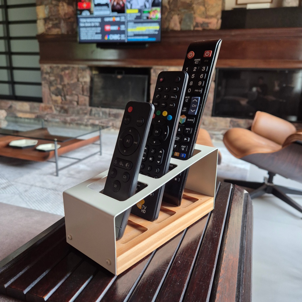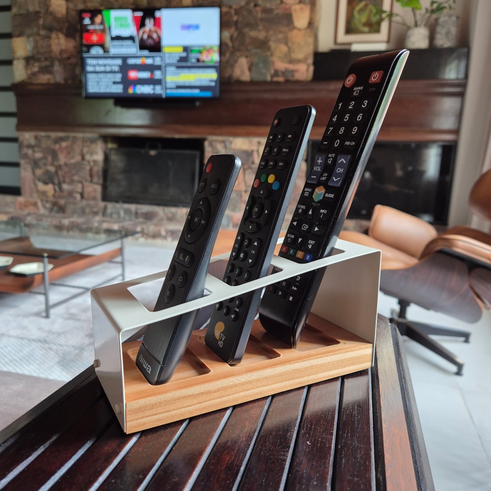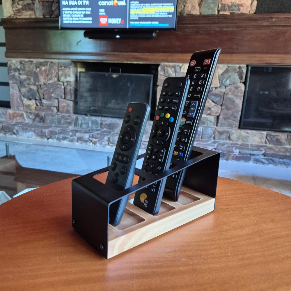 Para organizar e decorar. Possui 3 compartimentos para organizar os controles (tv, ar-condicionado). Produto de aço e maderia fabricado no Brasil. A coleção Floresta Urbana decora e traz um pouco da natureza para o seu dia-a-dia. Os controles não acompanham o produto.