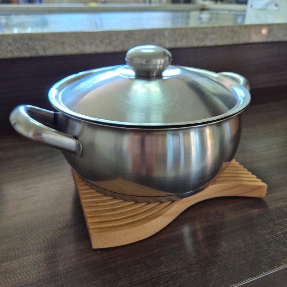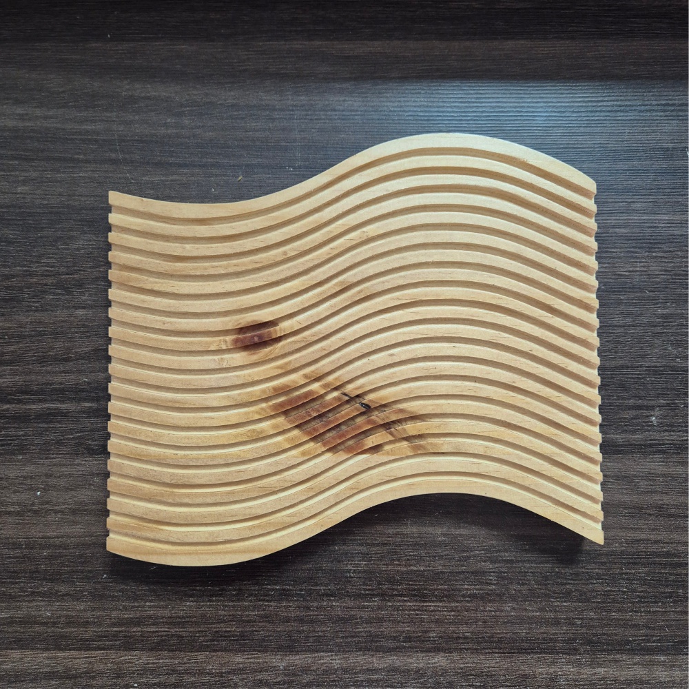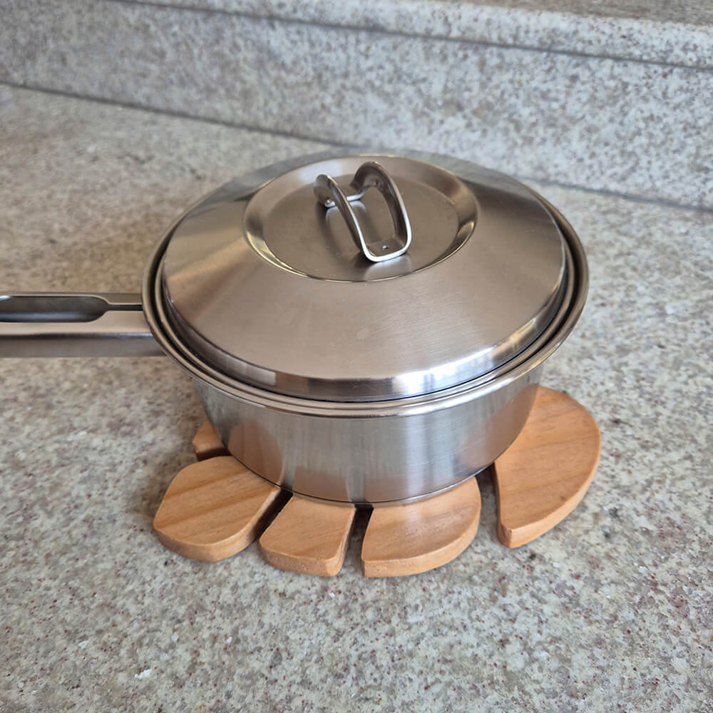 Descanso de panela, suporte de panela ou porta panela, no formato de onda. Para colocar a panela quente em cima. Você pode fazer composições com mais de porta panela. Produto de madeira fabricado no Brasil. A Coleção Floresta Urbana traz um pouco da natureza para a sua casa. A panela não acompanha o produto.