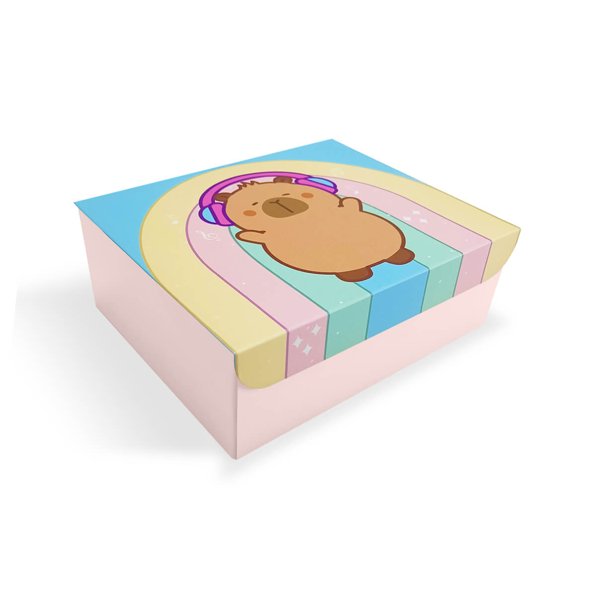 Caixa com capivara e arco-íris para organizar e decorar. A tampa abre com dobradiças. Produto de aço, sem divisórias internas, fabricado no Brasil. Todo dia é dia de se divertir! Em qualquer hora e em qualquer lugar! Então, por que não decorar os nossos ambientes com produtos que além de funcionais e práticos sejam divertidos? Os acessórios não acompanham o produto.