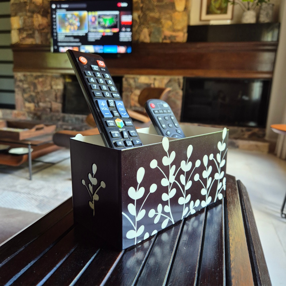 porta controle plantasRef: 10442006 Organizador, porta controles - possui 2 compartimentos para organizar os controles (da tv, do ar-condicionado) do seu ambiente (sala, quarto). Produto de aço fabricado no Brasil. A coleção Floresta Urbana decora e traz um pouco da natureza para o seu dia-a-dia. Os controles não acompanham o produto.