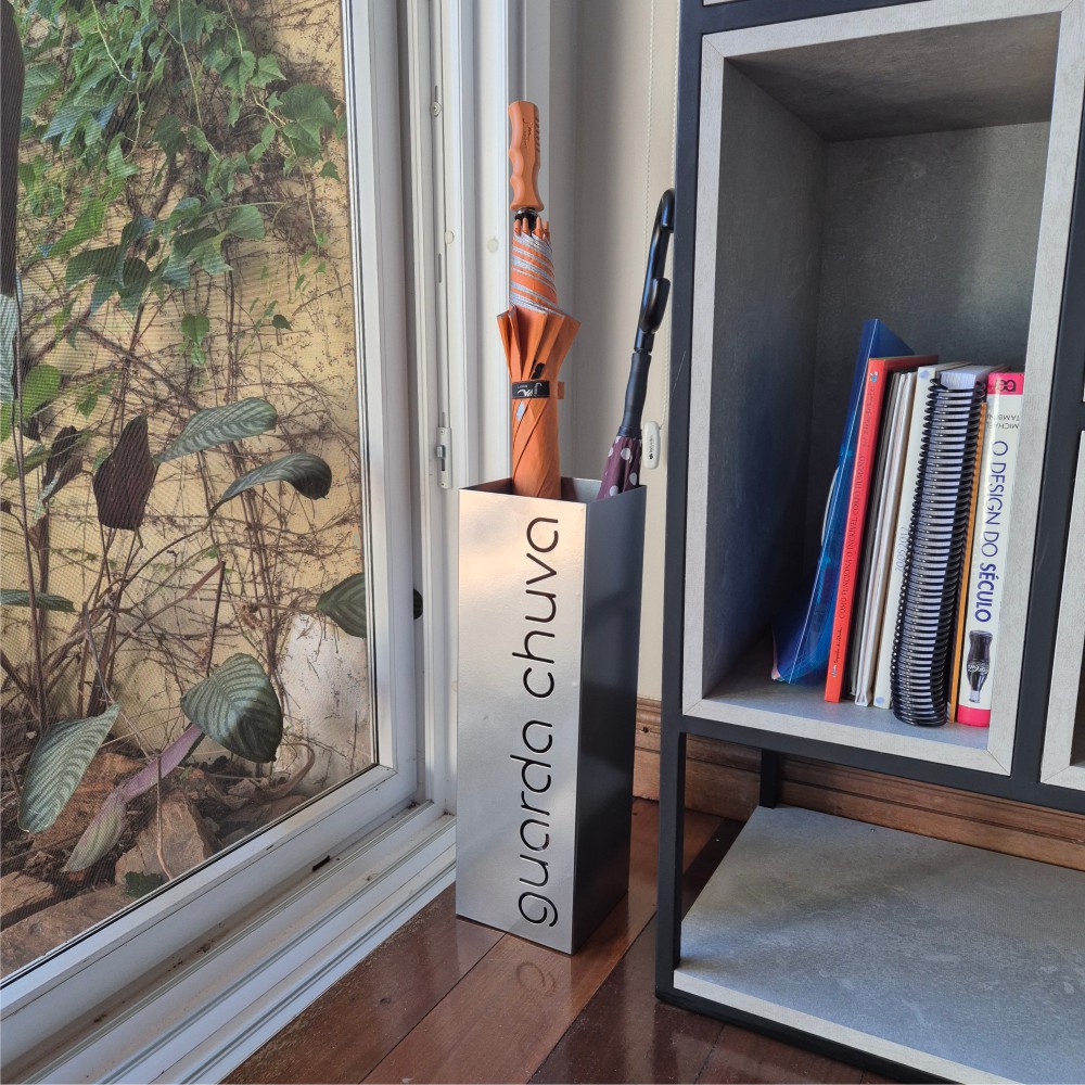 Para organizar e decorar a entrada de casa, do escritório, do consultório, da loja, já que precisamos ter um local para deixar os guarda-chuvas nos dias de chuva. Produto de aço fabricado no Brasil. A Coleção Básica é atemporal, minimalista e neutra. Minimalismo é simplificar a vida eliminando os excessos e mantendo apenas o que é essencial, sem abrir mão da funcionalidade e da praticidade. Qual a previsão do tempo para hoje? Os guarda-chuvas não acompanham o produto.