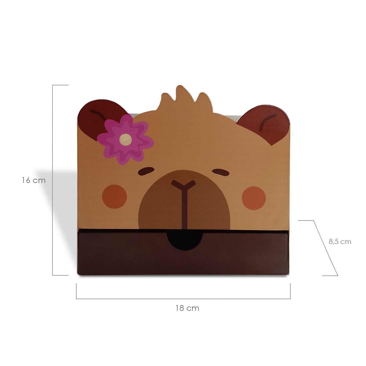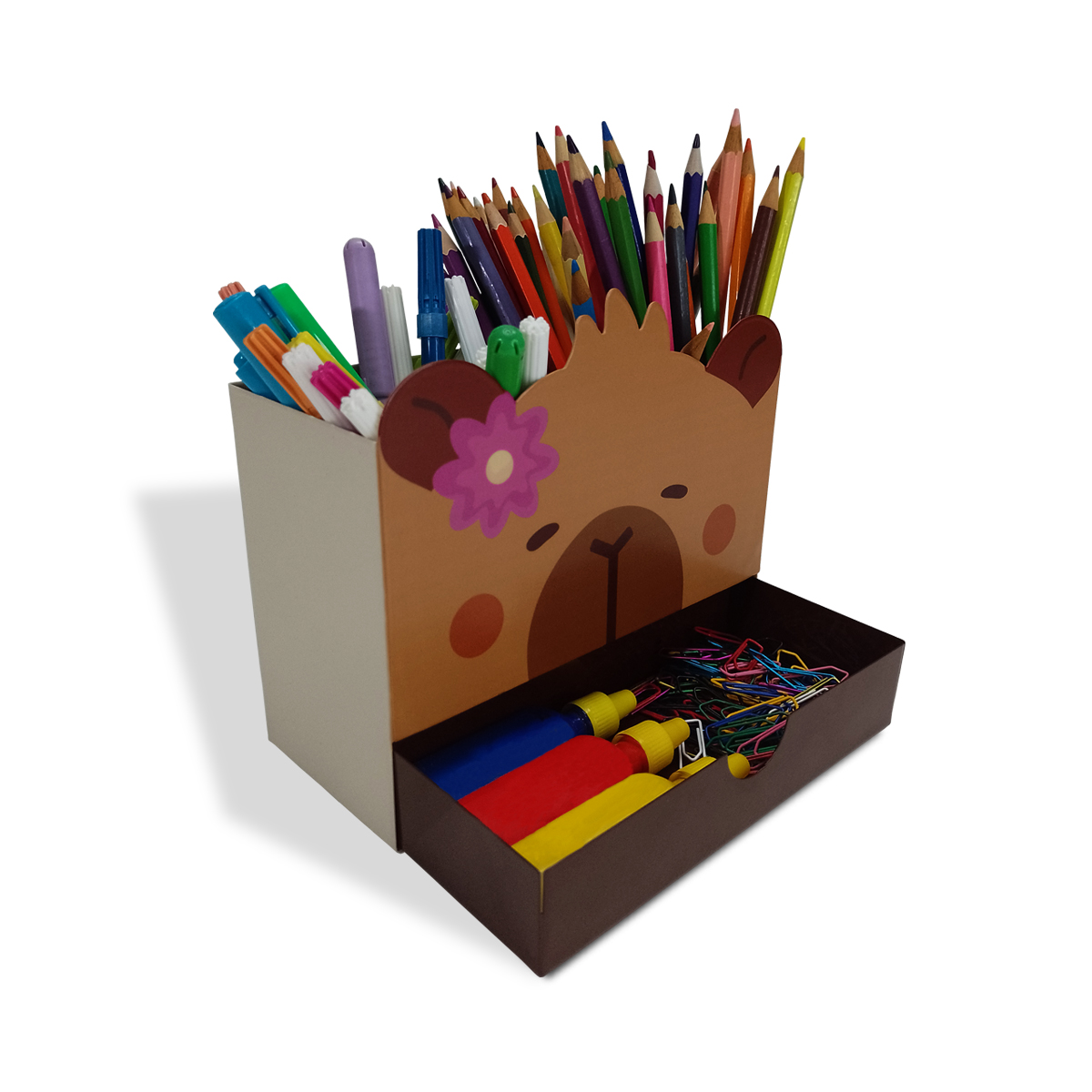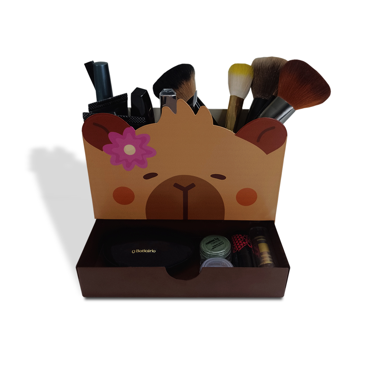 Para organizar de maneira fácil e prática suas maquiagens: rímel, lápis, pincéis, batons... Também pode ser utilizada para organizar sua mesa de estudos: lápis, canetas, tesoura... Produto de aço, no formato de capivara, com dois compartimentos e uma gaveta, fabricado no Brasil. Todo dia é dia de se divertir! Em qualquer hora e em qualquer lugar! Então, por que não decorar os nossos ambientes com produtos que além de funcionais e práticos sejam divertidos? Os acessórios não acompanham o produto.