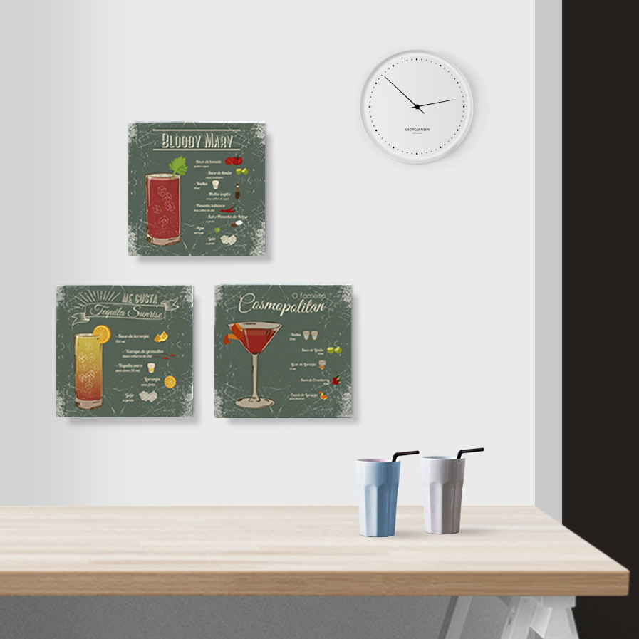 Um quadro para decorar seu ambiente com estilo vintage e super prático para não esquecer a receita do seu drink favorito. Imagens meramente ilustrativas.