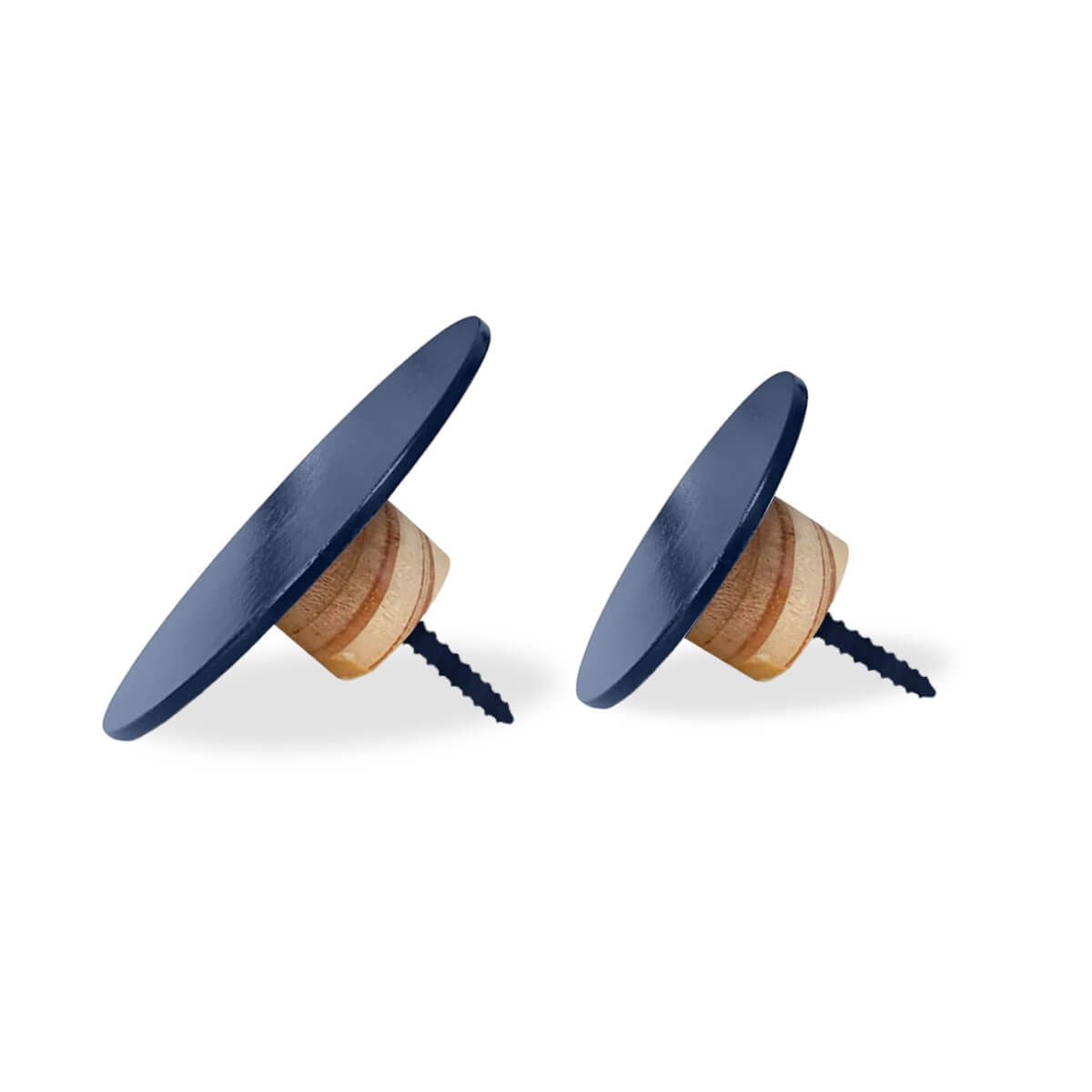 Conjunto formado por 2 ganchos no formato redondo, em dois tamanhos diferentes. Neutros, práticos e funcionais, para organizar e decorar fazendo composições. Para fixar em parede de alvenaria com os parafusos e buchas que acompanham o produto. Produto de aço carbono, na cor azul marinho e madeira pinus de reflorestamento fabricado no Brasil. A Coleção Básica é atemporal, minimalista e neutra. Minimalismo é simplificar a vida eliminando os excessos e mantendo apenas o que é essencial, sem abrir mão da funcionalidade e da praticidade. Os acessórios pendurados não acompanham o produto.
