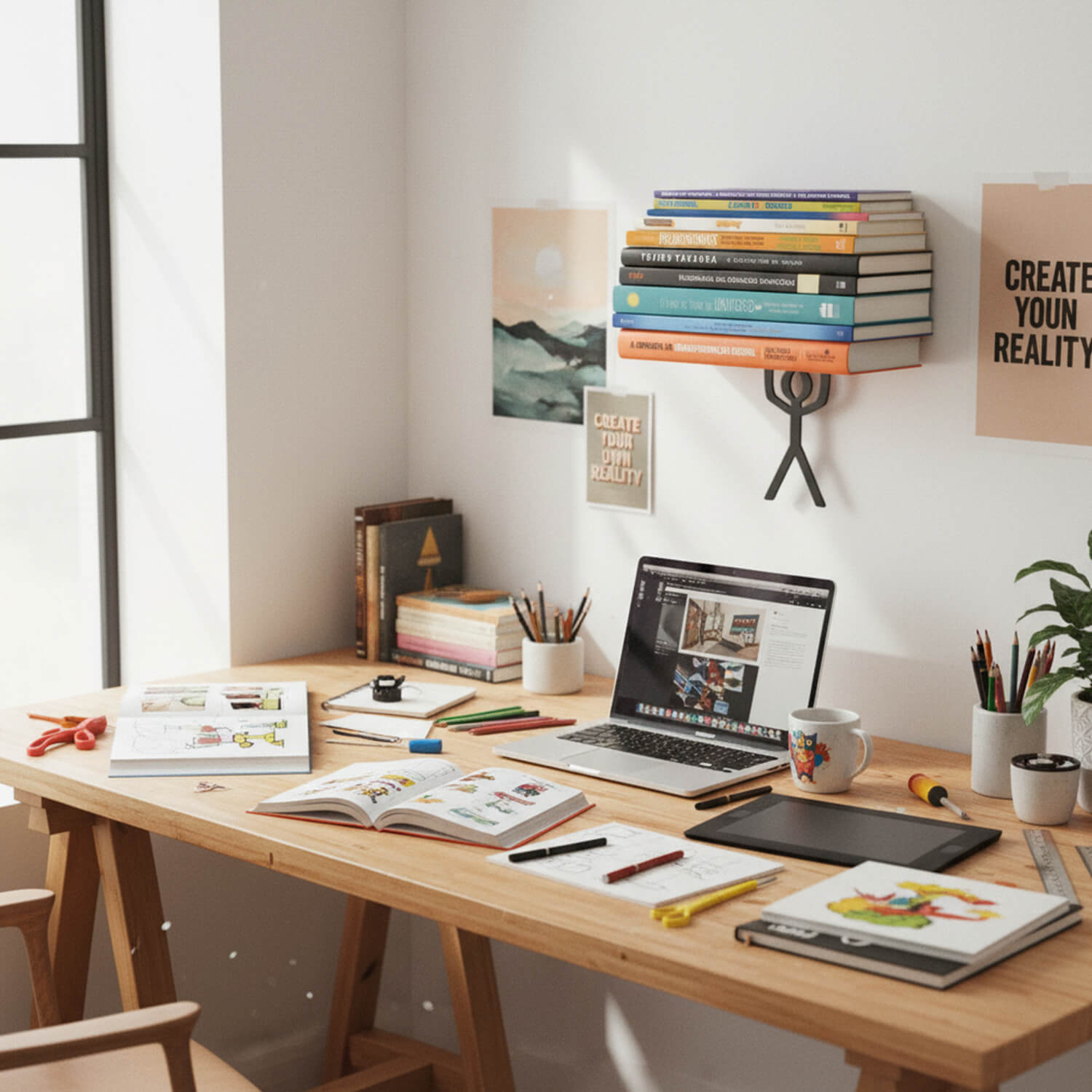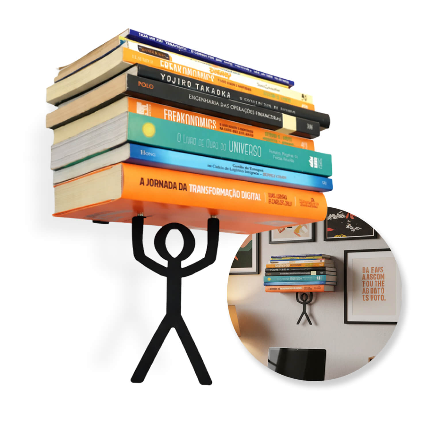 Transforme sua estante em uma cena digna de cinema com este suporte invisível que cria a ilusão de livros flutuantes. O design inteligente utiliza uma base oculta e um boneco magnético para simular a força de um herói segurando suas obras favoritas no ar. É o toque de criatividade e modernidade que faltava para organizar suas leituras com estilo e personalidade.