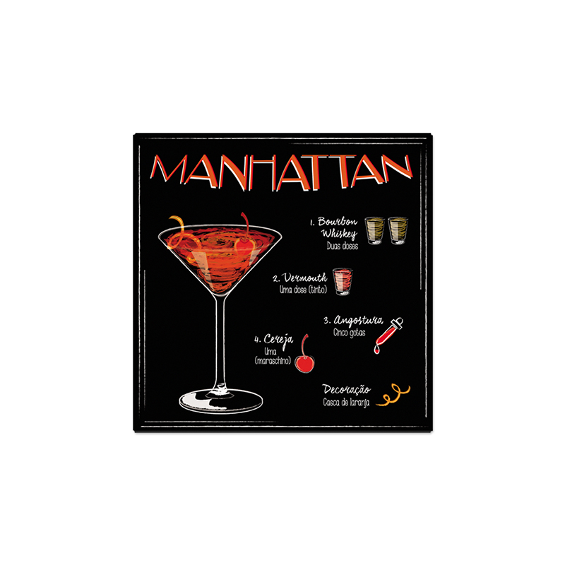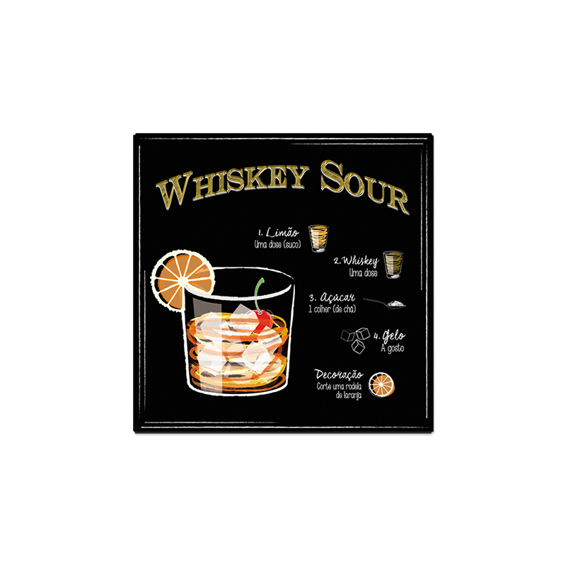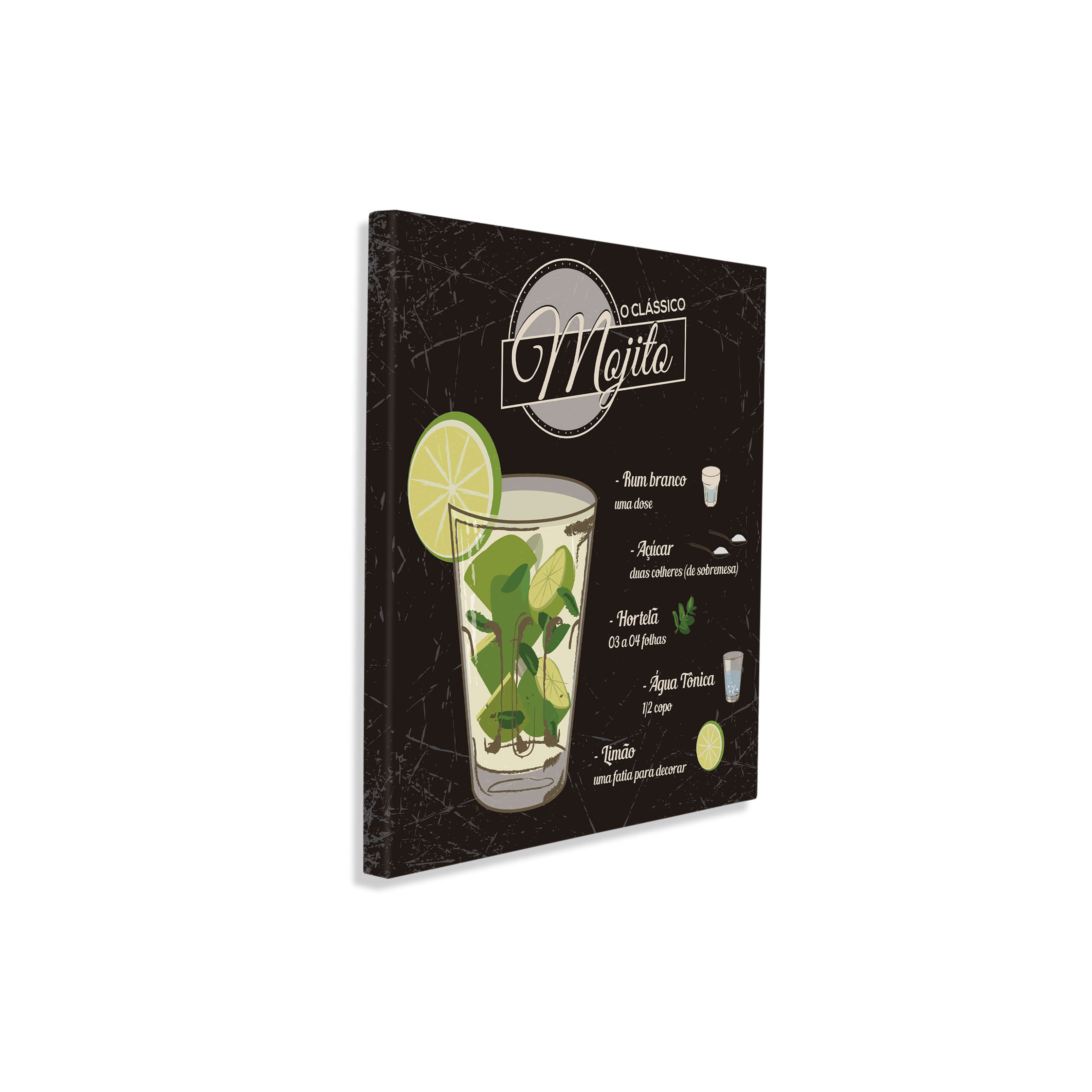 O clássico Mojito = rum branco + açúcar + hortelã + água tônica + limão. Para pendurar na parede, fazer composições com outros quadros drinks, no seu ambiente Happy Hour. Produto de aço fabricado no Brasil. A Coleção Happy Hour é uma celebração à vida. A vida não é só para ser vivida. É para ser celebrada.