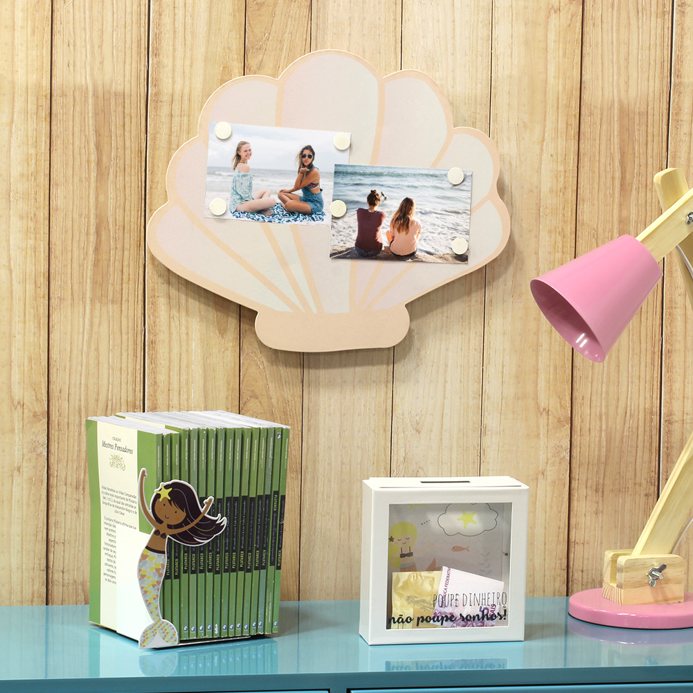 Para segurar livros e decorar. Produto de aço fabricado no Brasil. Todo dia é dia de se divertir! Em qualquer hora e em qualquer lugar! Então, por que não decorar os nossos ambientes com produtos que além de funcionais e práticos sejam divertidos? Para presentear uma sereia que ama ler.