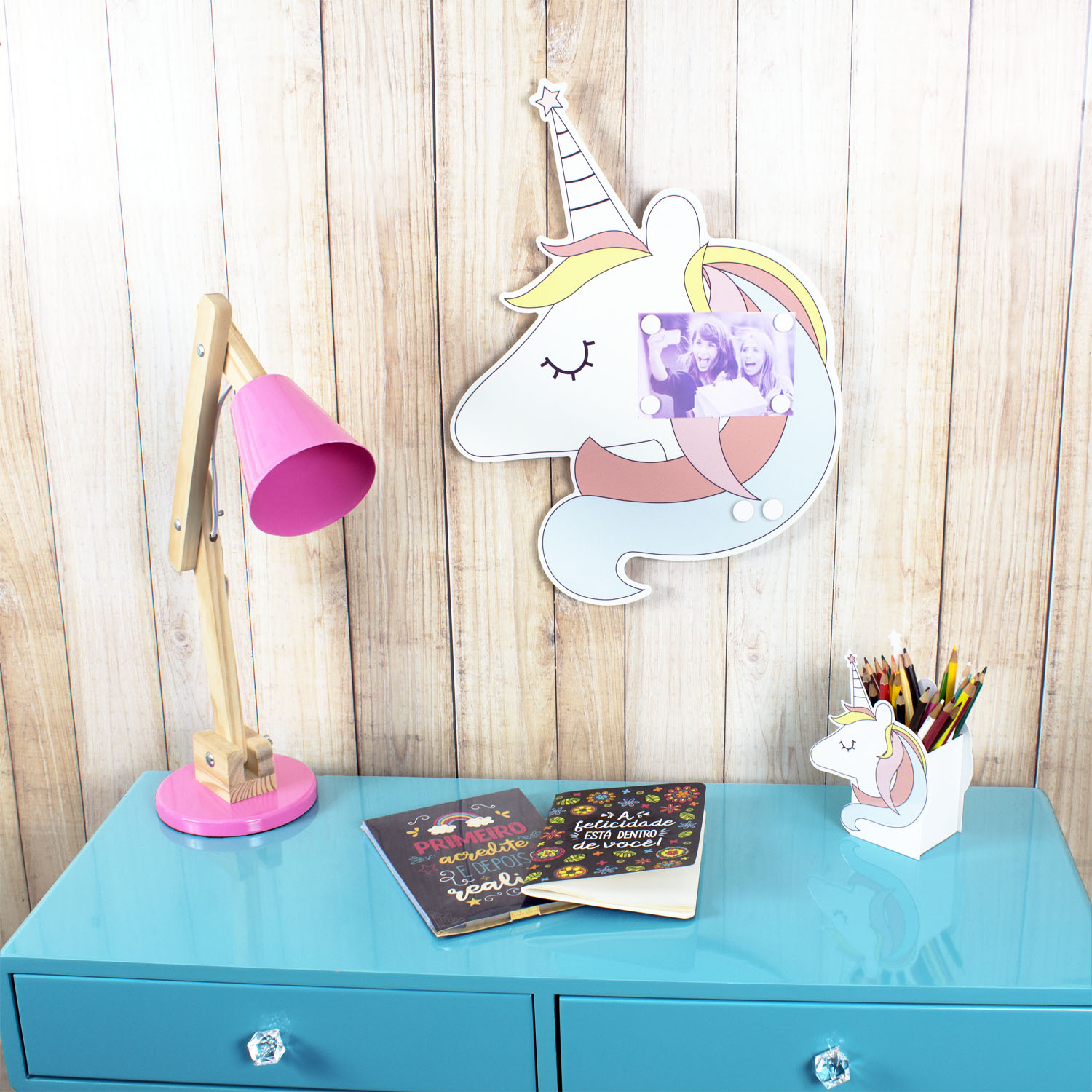 Sonhe alto e acredite em unicórnios. Para organizar e decorar o espaço de atividades. Produto de aço fabricado no Brasil. Todo dia é dia de se sonhar! Em qualquer hora e em qualquer lugar! Então, por que não decorar os nossos ambientes com produtos que além de funcionais e práticos sejam inspiradores? Sugestão de presente para meninas.