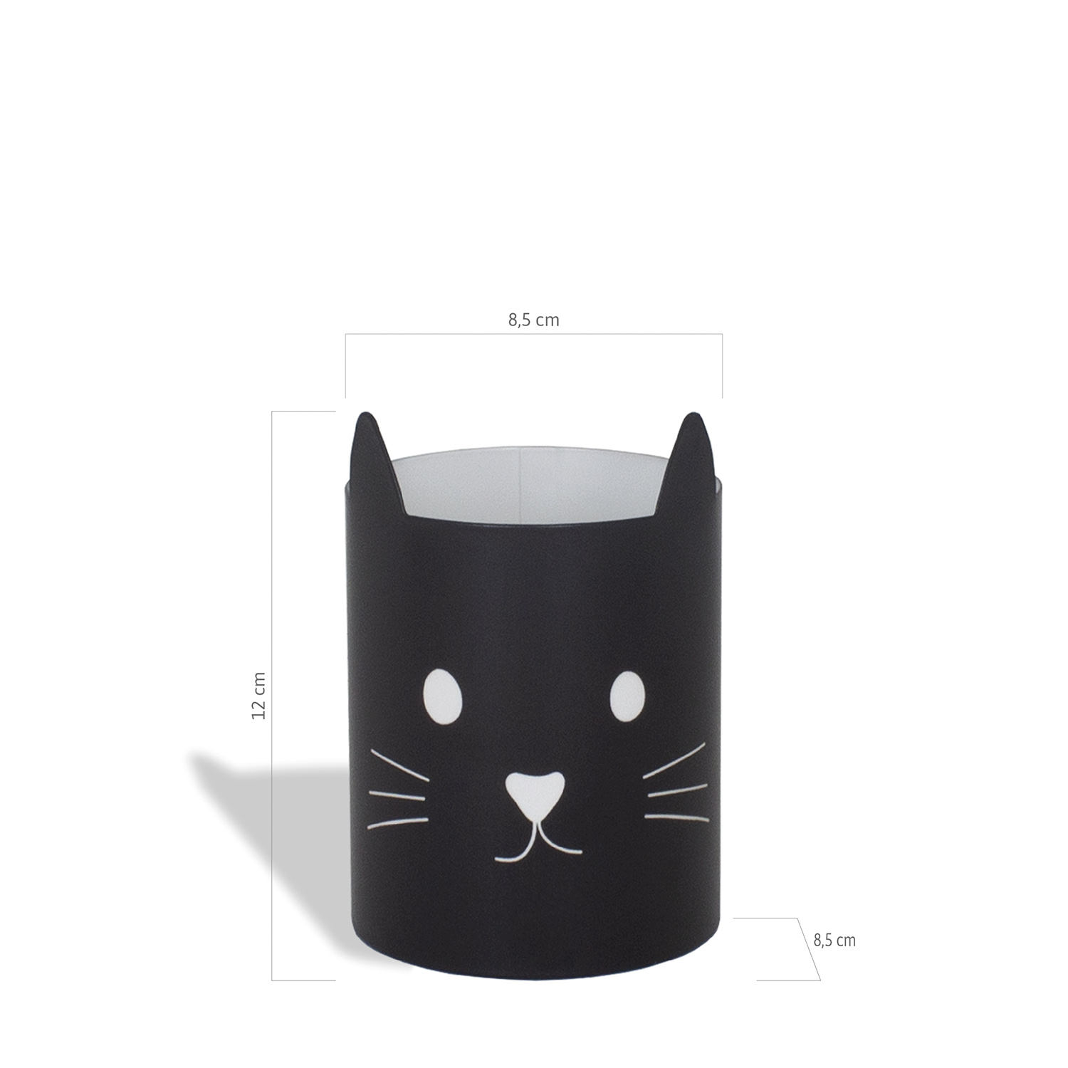 Para organizar e decorar a mesa de trabalho. Nele você pode colocar lápis, caneta, tesoura... Produto de aço fabricado no Brasil. Todo dia é dia de se divertir! Em qualquer hora e em qualquer lugar! Então, por que não decorar os nossos ambientes com produtos que além de funcionais e práticos sejam divertidos? Sugestão de presente para quem ama gato. Os lápis, canetas, tesoura não acompanham o produto.