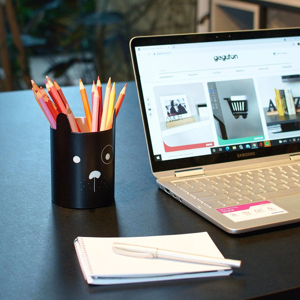Para organizar e decorar a mesa de trabalho. Nele você pode colocar lápis, caneta, tesoura... Produto de aço fabricado no Brasil. Todo dia é dia de se divertir! Em qualquer hora e em qualquer lugar! Então, por que não decorar os nossos ambientes com produtos que além de funcionais e práticos sejam divertidos? Sugestão de presente para quem ama cachorro. Os lápis, canetas, tesoura não acompanham o produto.