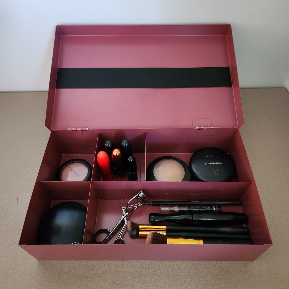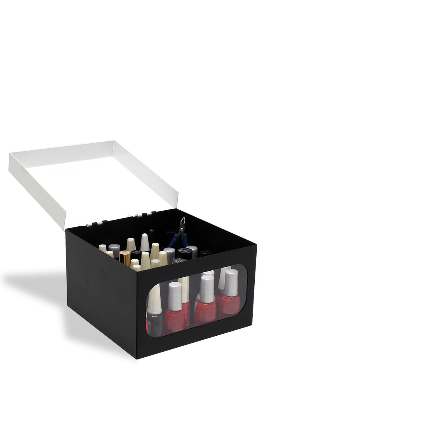 Caixa com duas divisória internas para organizar de maneira fácil e prática seus esmaltes e acessórios de manicure e pedicure: alicate, lixa, acetona, algodão. Possui um visor transparente e a tampa abre com dobradiças. Produto de aço fabricado no Brasil. A Coleção Beauty é inspirada nas mulheres apaixonadas por maquiagens e acessórios, que curtem moda e beleza, arrasam no look e são uma inspiração para outras mulheres. Sugestão de presente para quem ama estar com as unhas sempre perfeitas. Os emaltes não acompanham o produto.