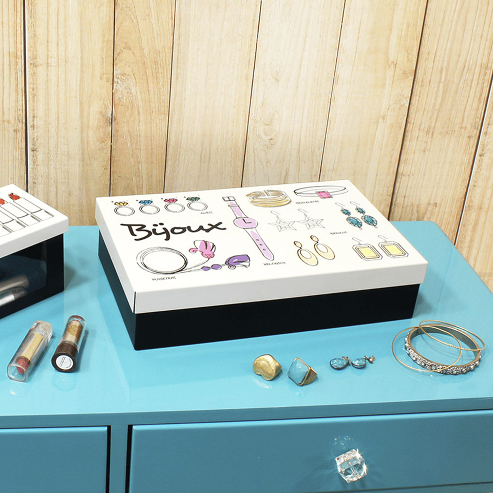 Moderna e com muito estilo, essa caixa foi desenvolvida com divisórias internas para organizar de maneira fácil e prática acessósrios e bijoux: brincos, anéis, pulseiras, colares, relógio, a tampa abre com dobradiças. Produto de aço fabricado no Brasil. A Coleção Beauty é inspirada nas mulheres apaixonadas por maquiagens e acessórios, que curtem moda e beleza, arrasam no look e são uma inspiração para outras mulheres. Sugestão de presente para quem adora se enfeitar. As joias, bijoux não acompanham o produto.