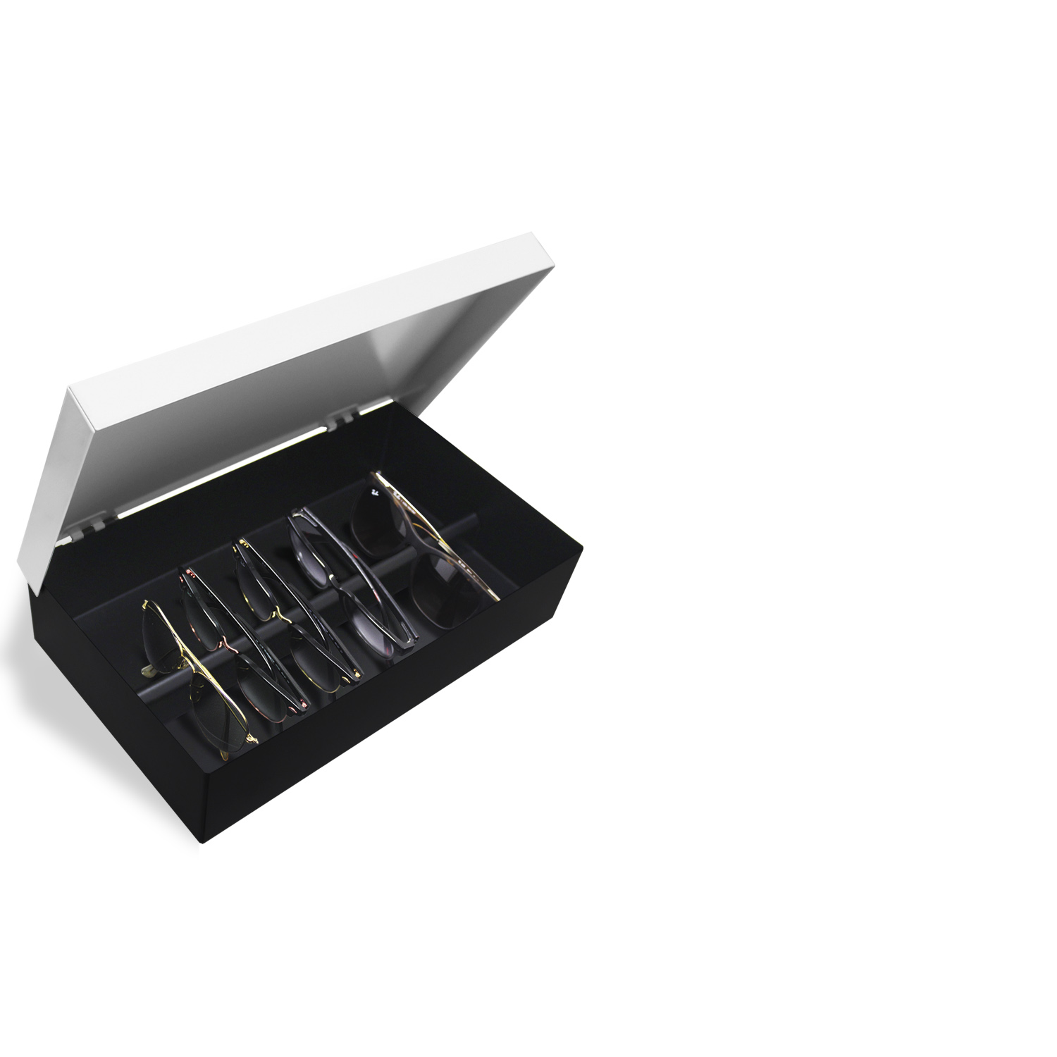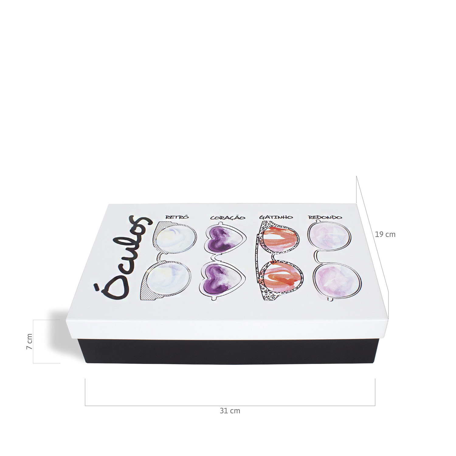 Moderna e com muito estilo, essa caixa foi desenvolvida com uma divisória interna para organizar de maneira fácil e prática óculos, a tampa abre com dobradiças. Produto de aço fabricado no Brasil. A Coleção Beauty é inspirada nas mulheres apaixonadas por maquiagens e acessórios, que curtem moda e beleza, arrasam no look e são uma inspiração para outras mulheres. Sugestão de presente para quem curte óculos. Os óculos não acompanham o produto.