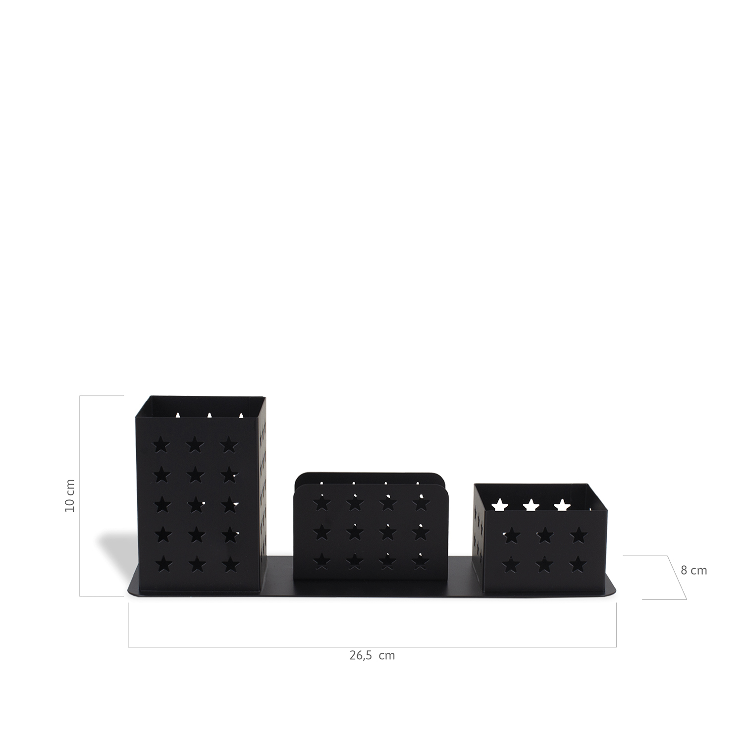 O porta caneta triplo estrelinha é um clássico Geguton, em linha desde 1995, foi um dos primeiros produtos que a Geguton começou a produzir e é um sucesso desde então. Ele é um porta caneta, cartões e clips de aço. Para organizar e decorar a mesa de trabalho. Produto fabricado no Brasil. A Coleção Básica é atemporal, minimalista e neutra. Minimalismo é simplificar a vida eliminando os excessos e mantendo apenas o que é essencial, sem abrir mão da funcionalidade e da praticidade. Os lápis, canetas, tesoura não acompanham o produto. Os lápis, canetas, tesoura não acompanham o produto.